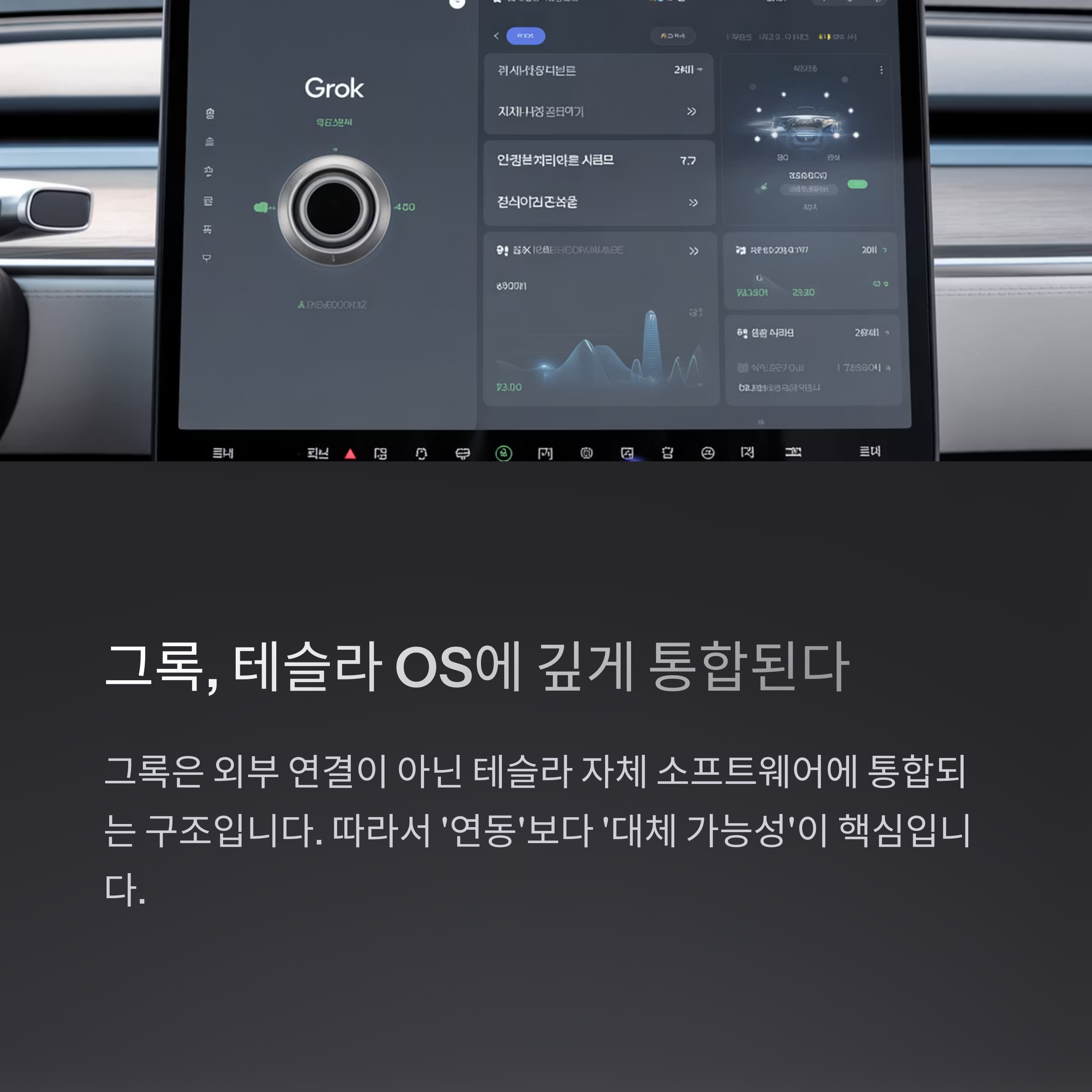 그록은 테슬라 자체 소프트웨어에 통합되는 구조로 설계됩니다.
