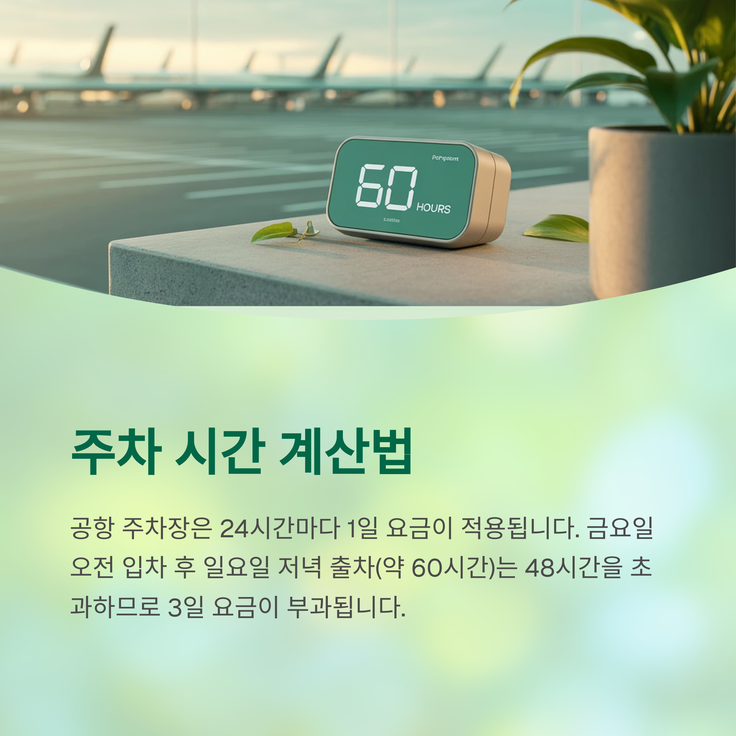 공항 주차장은 "24시간마다 1일 요금"이 적용되는 방식입니다.