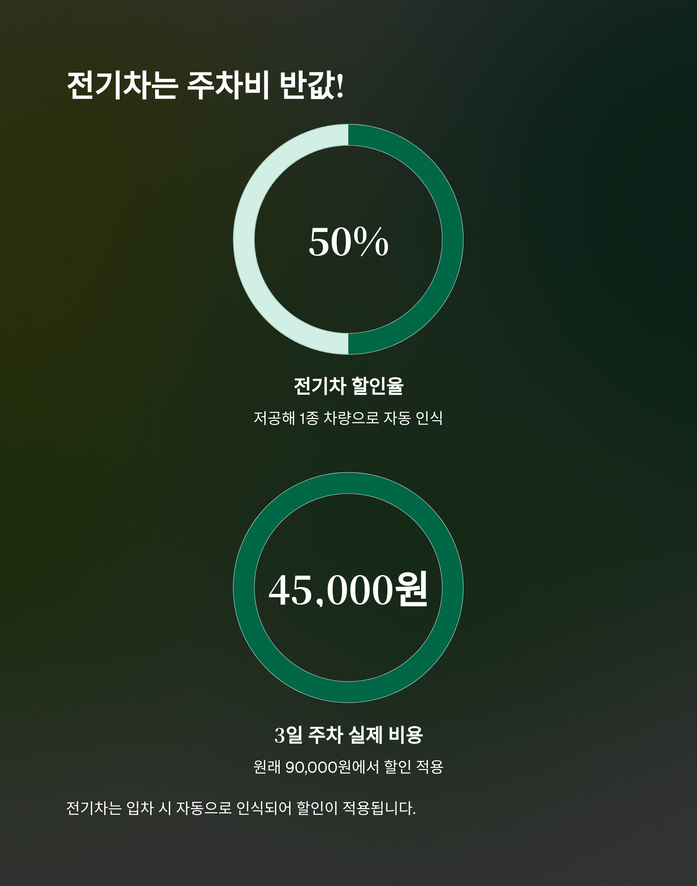 전기차 3일 주차 시 총 90,000원의 50%인 45,000원만 지불하면 됩니다.