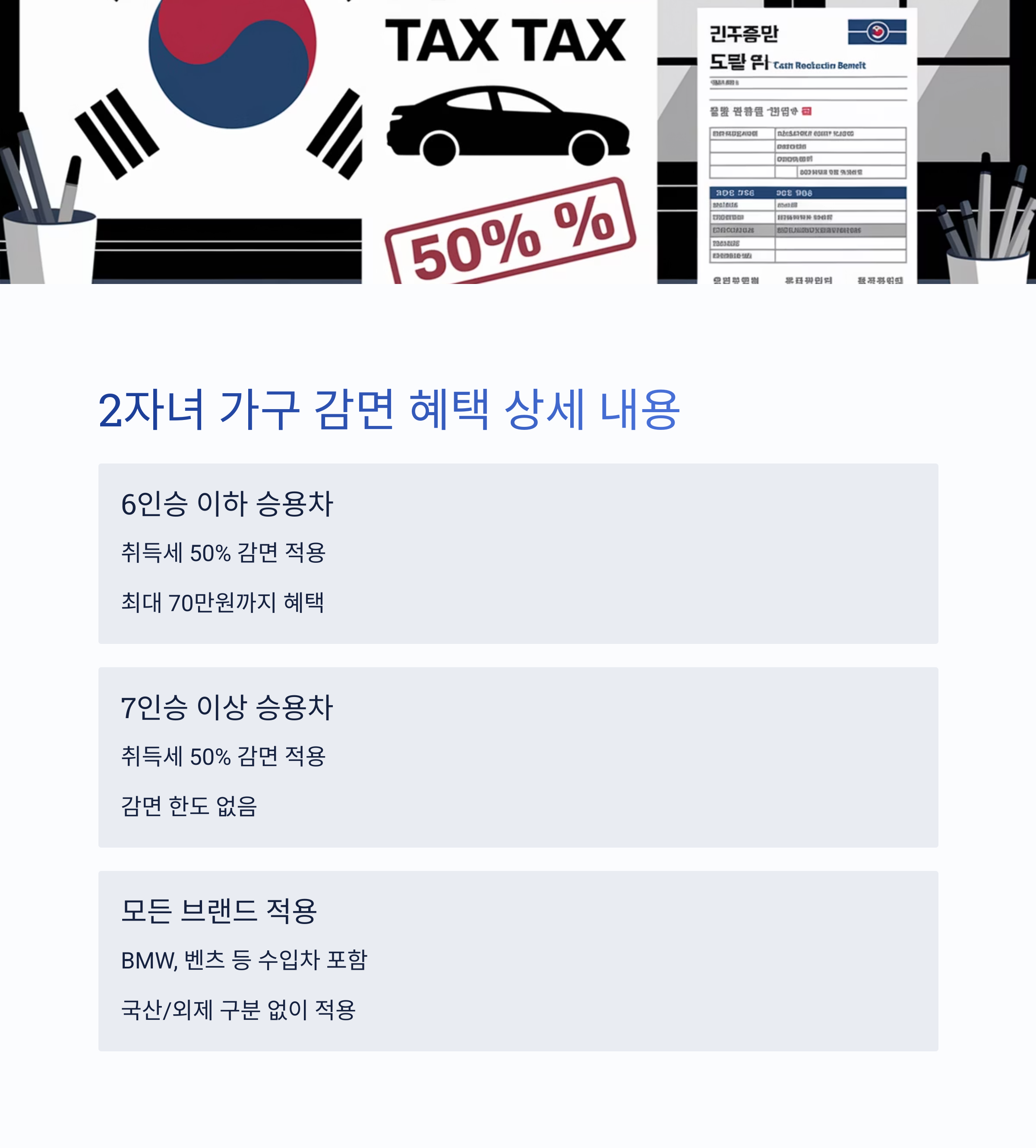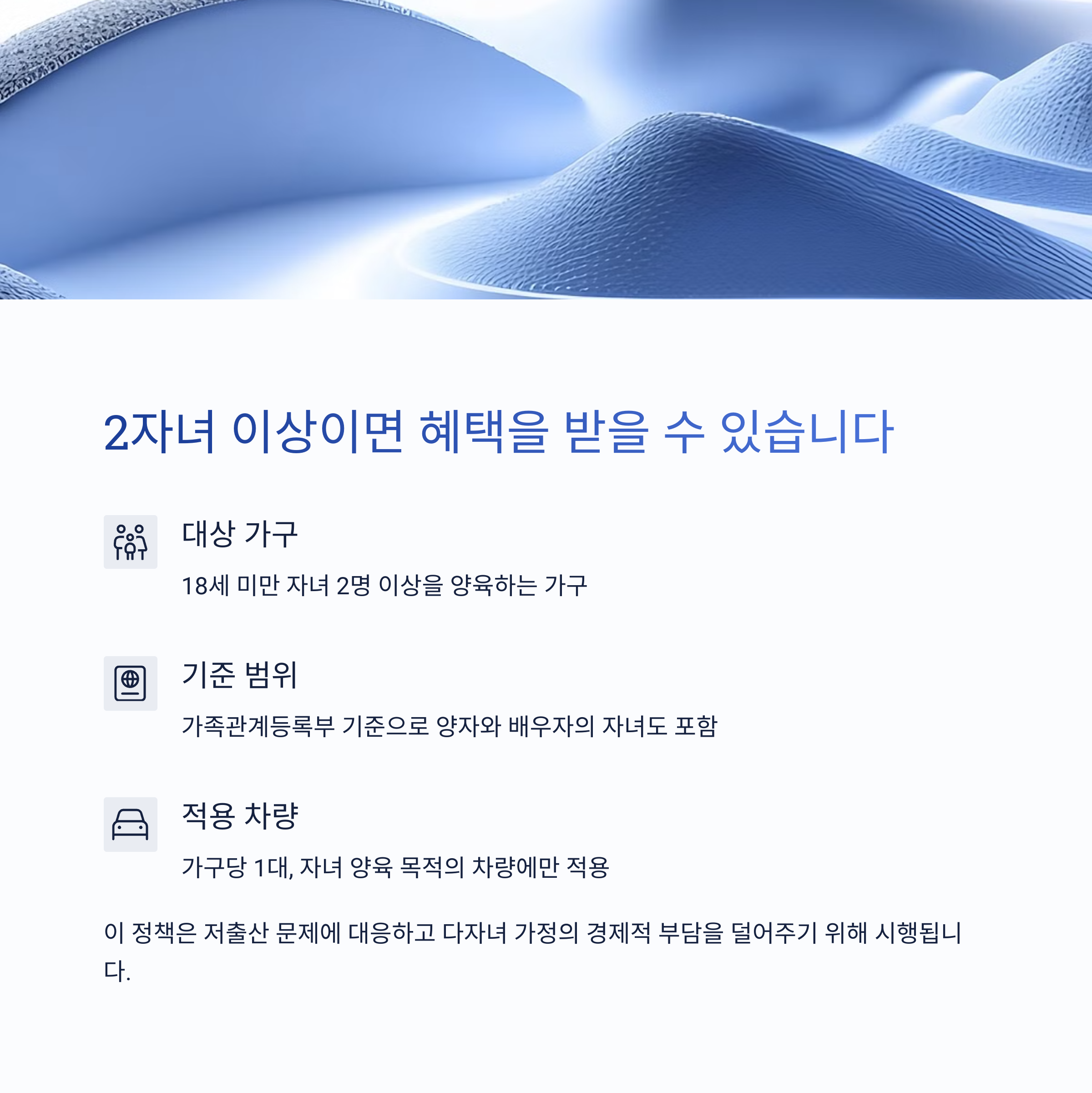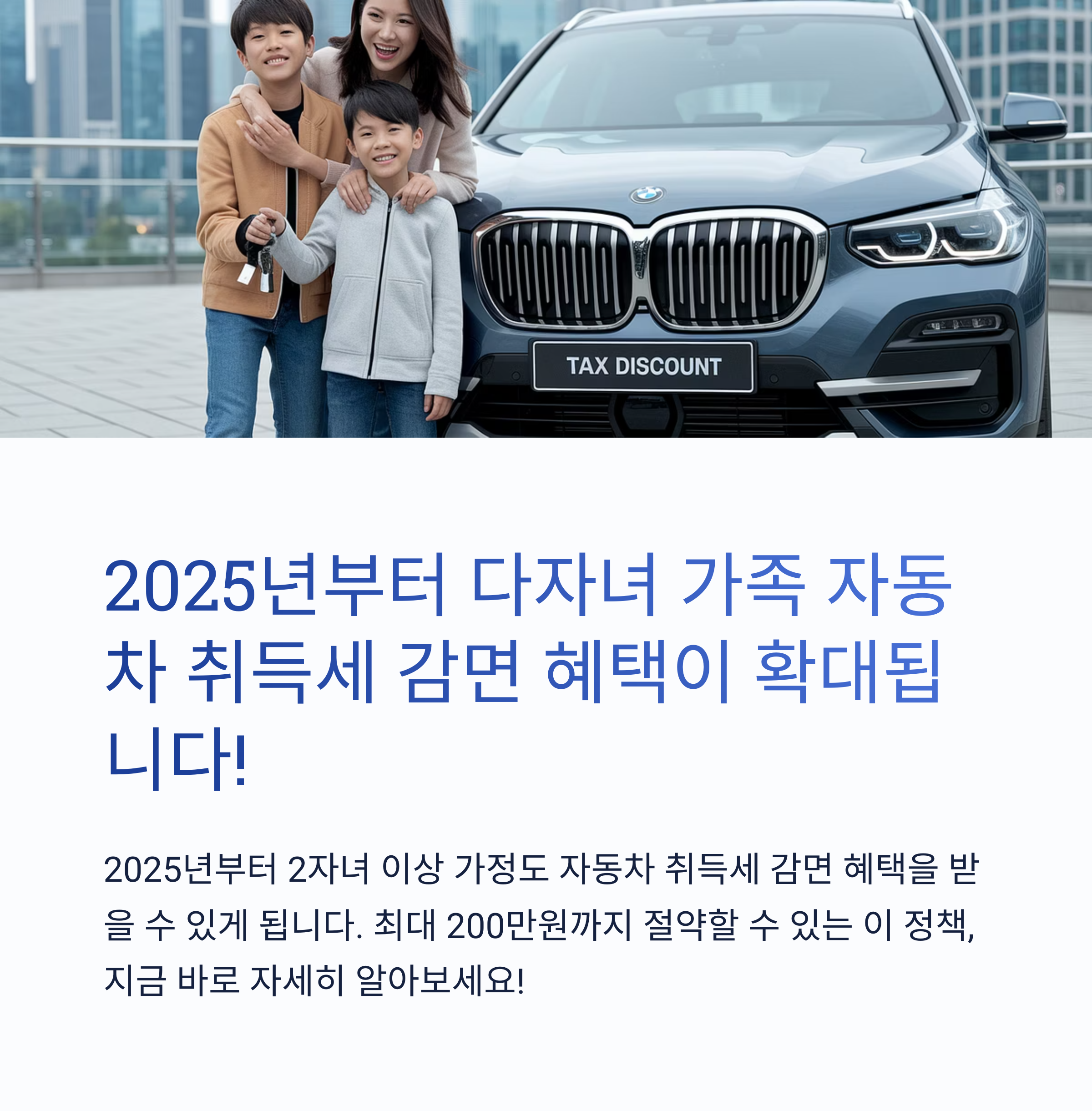 - 2025년 정책에서 2자녀 이상 가구 자동차 취득세 감면 확대