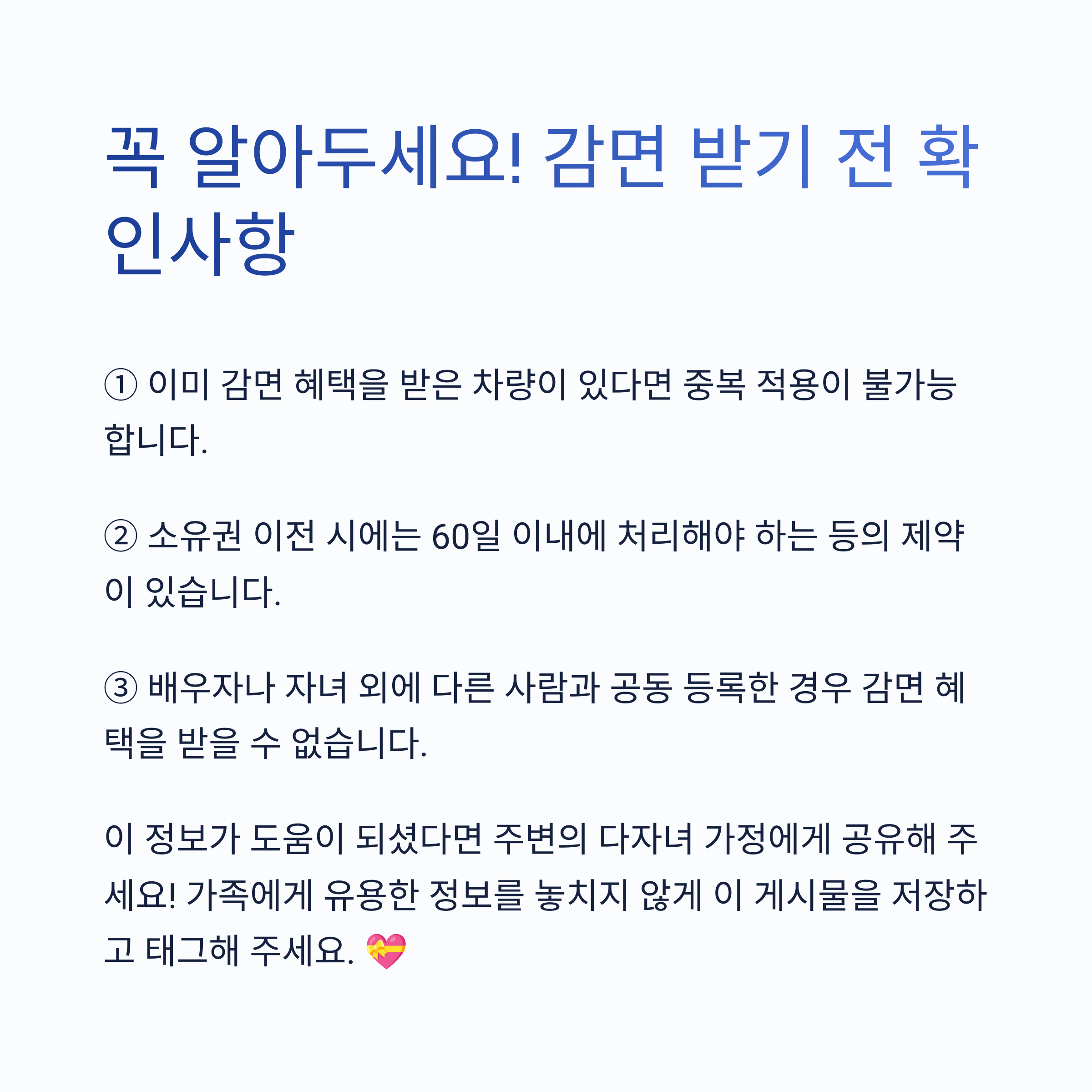 경제적 부담 완화를 통해 다자녀 가구의 자동차 구입 부담을 줄이고 출산 장려로 이어지길 기대하고 있습니다.