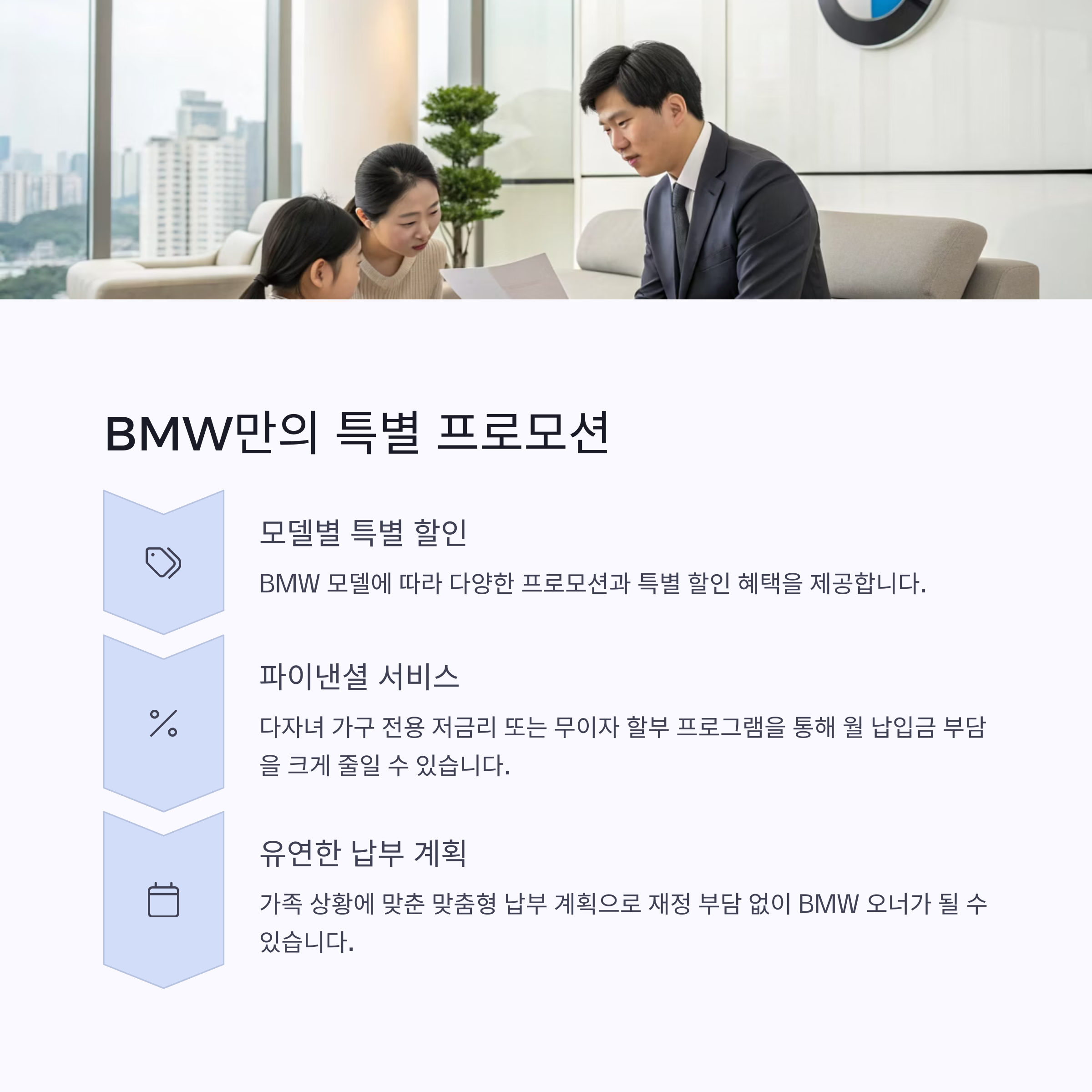 | Q. BMW 금융 프로모션은 다자녀 가구에 어떻게 유리한가요? |