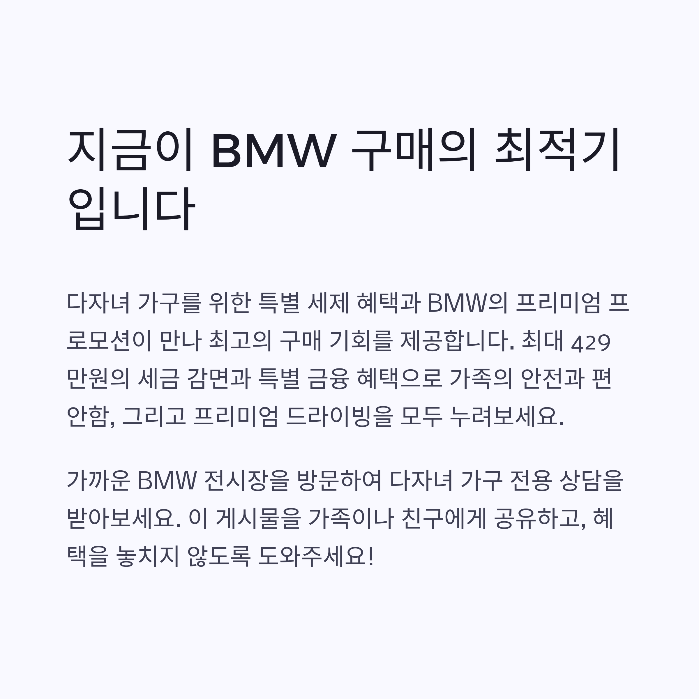 | Q. BMW 금융 프로모션은 다자녀 가구에 어떻게 유리한가요? |