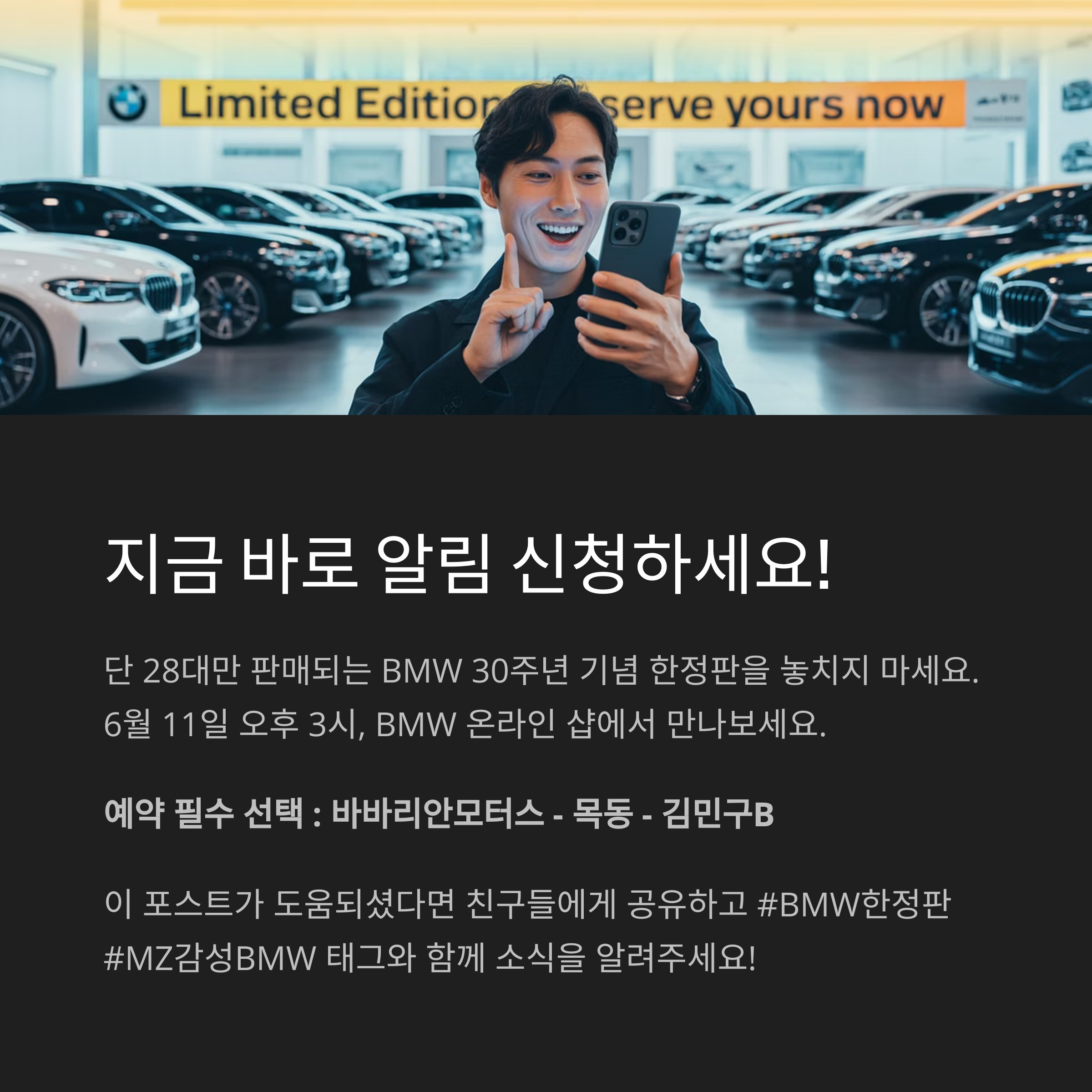 6월 11일 오후 3시, BMW 온라인 샵에서만 오픈합니다! [예약 담당자 : 바바리안모터스 - 목동 - 김민구]