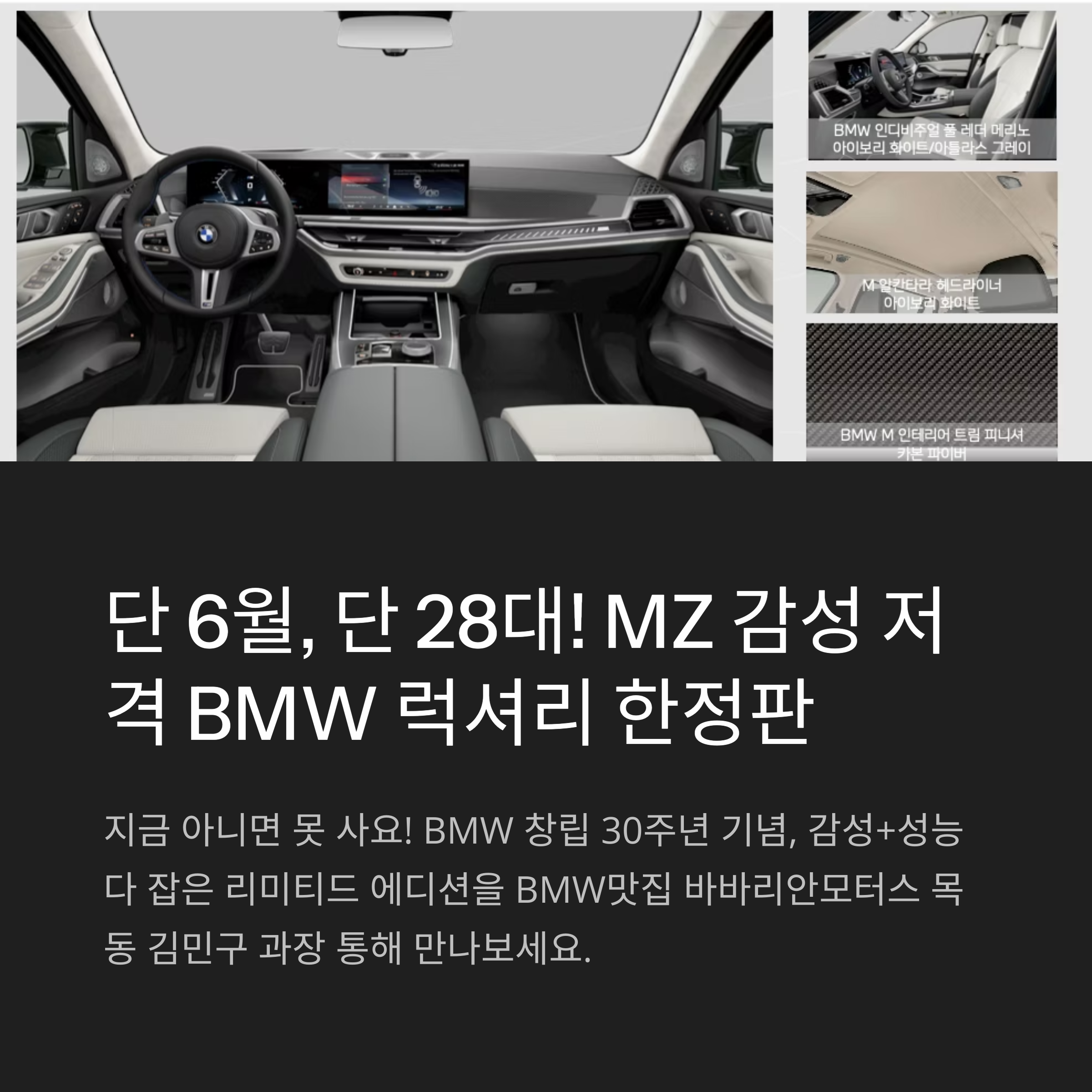 BMW 30주년 기념이라 수량은 역대급 소량, 컬러랑 내장도 MZ 감성 딱입니다.