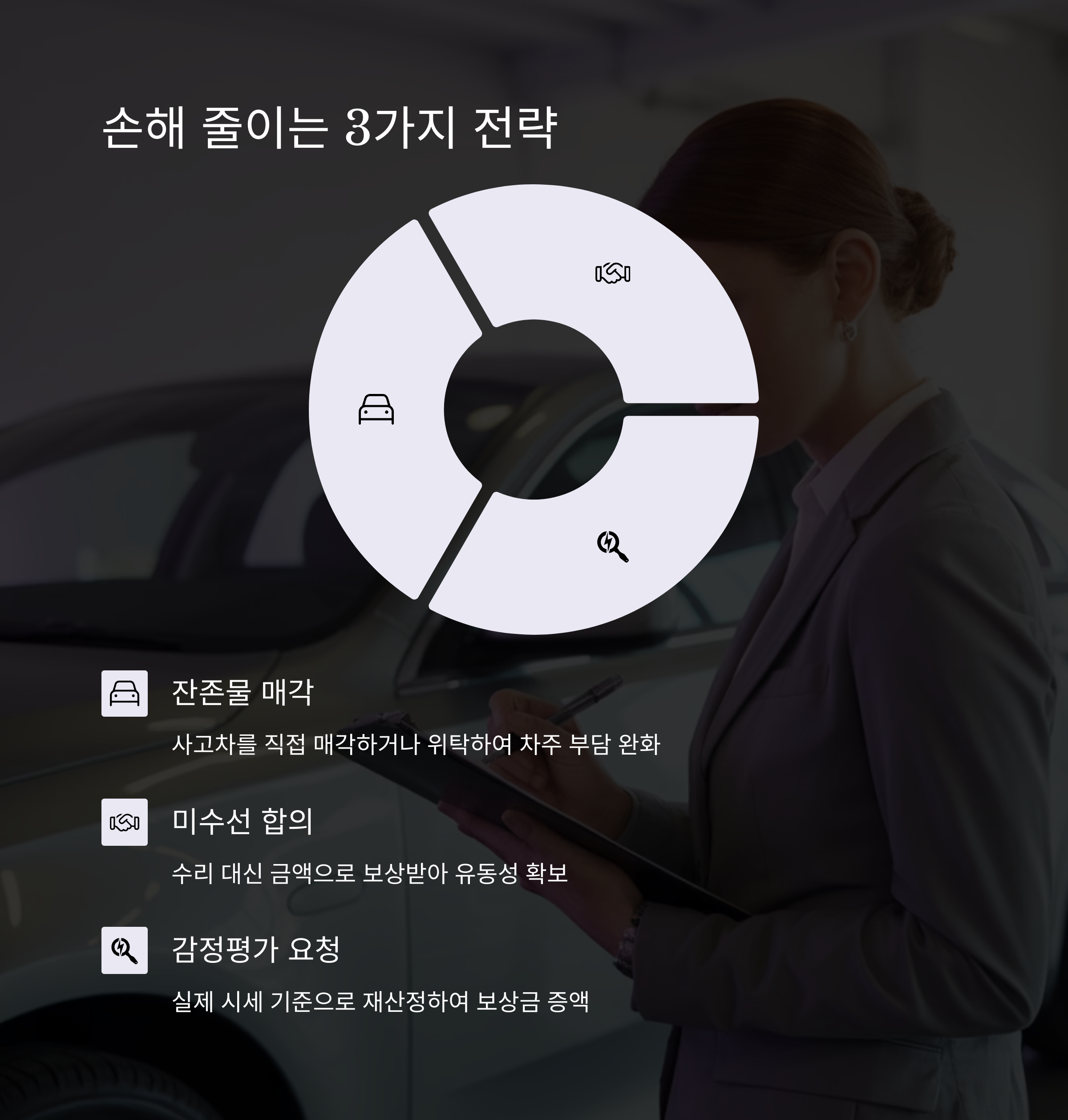 | 잔존물 매각 | 사고 차량을 직접 매각하거나 위탁 | 차주 부담 완화 |