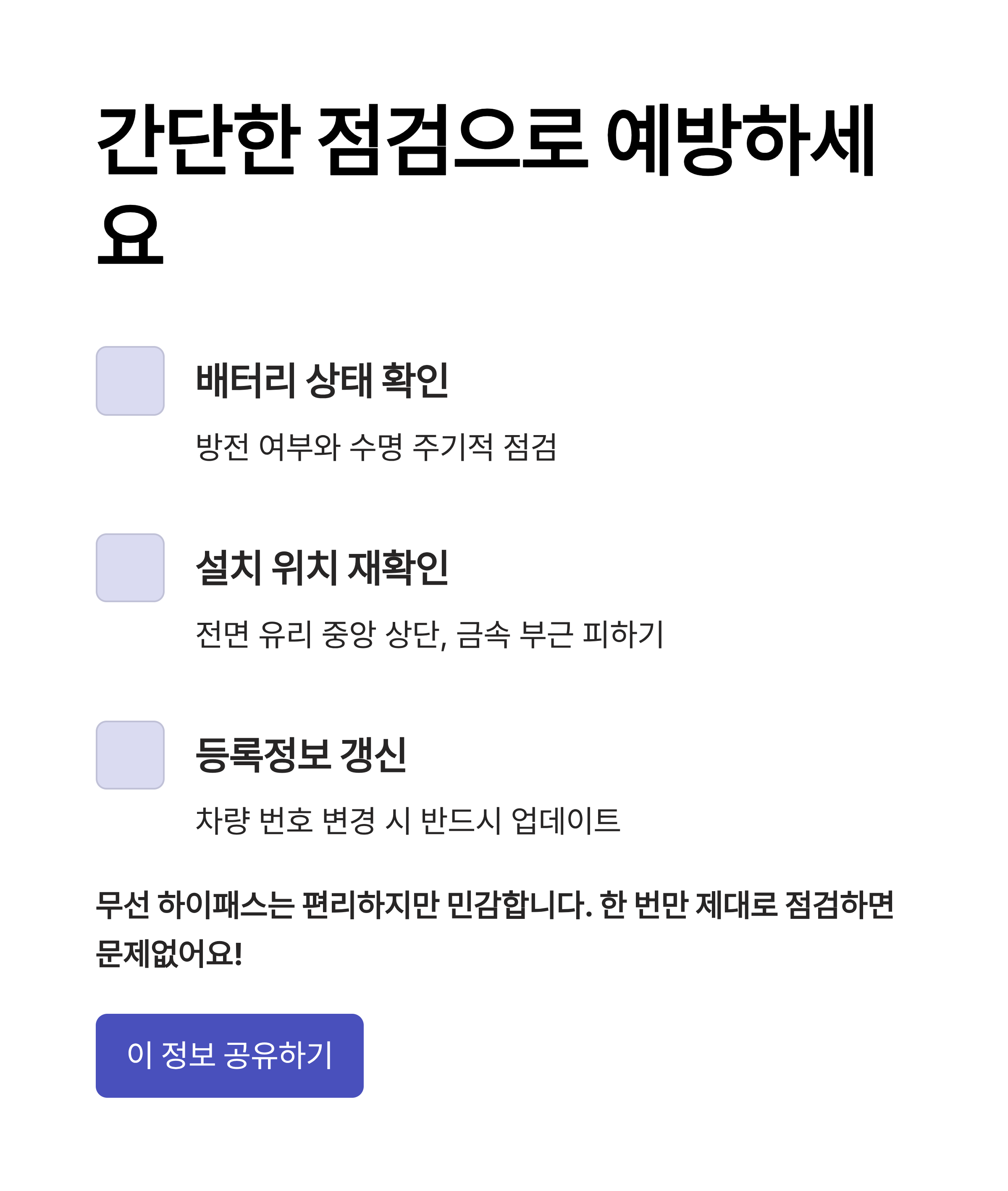 이 경우 무선 하이패스의 통신이 제대로 이뤄지지 않을 수 있습니다.