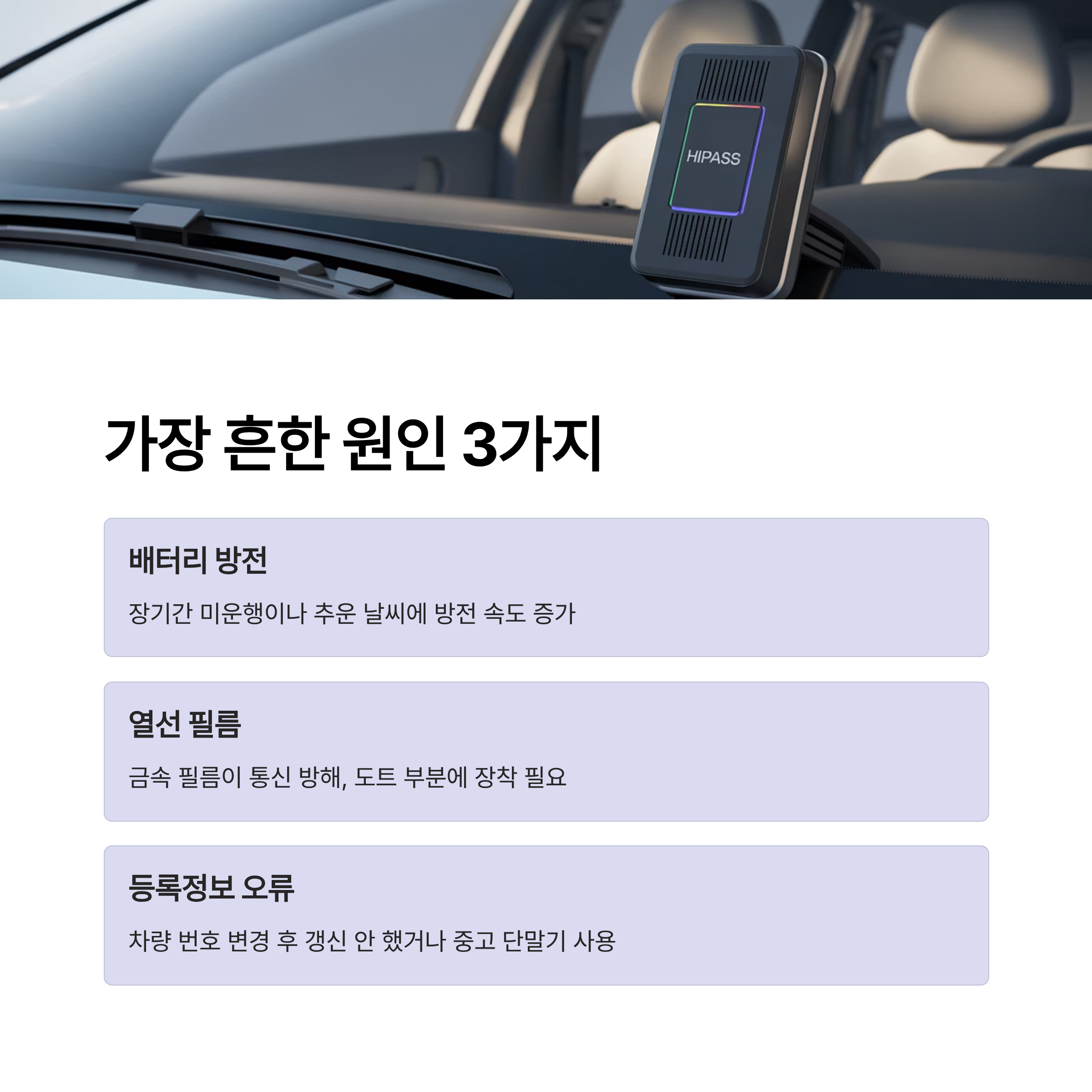 차량 번호 변경 후 등록 정보 갱신을 안 했거나, 중고 단말기를 그냥 사용한 경우에도 인식 오류가 발생해요.