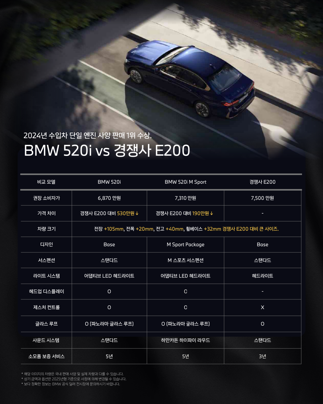 520i는 경쟁사 E200 대비 최대 530만 원 저렴하면서도