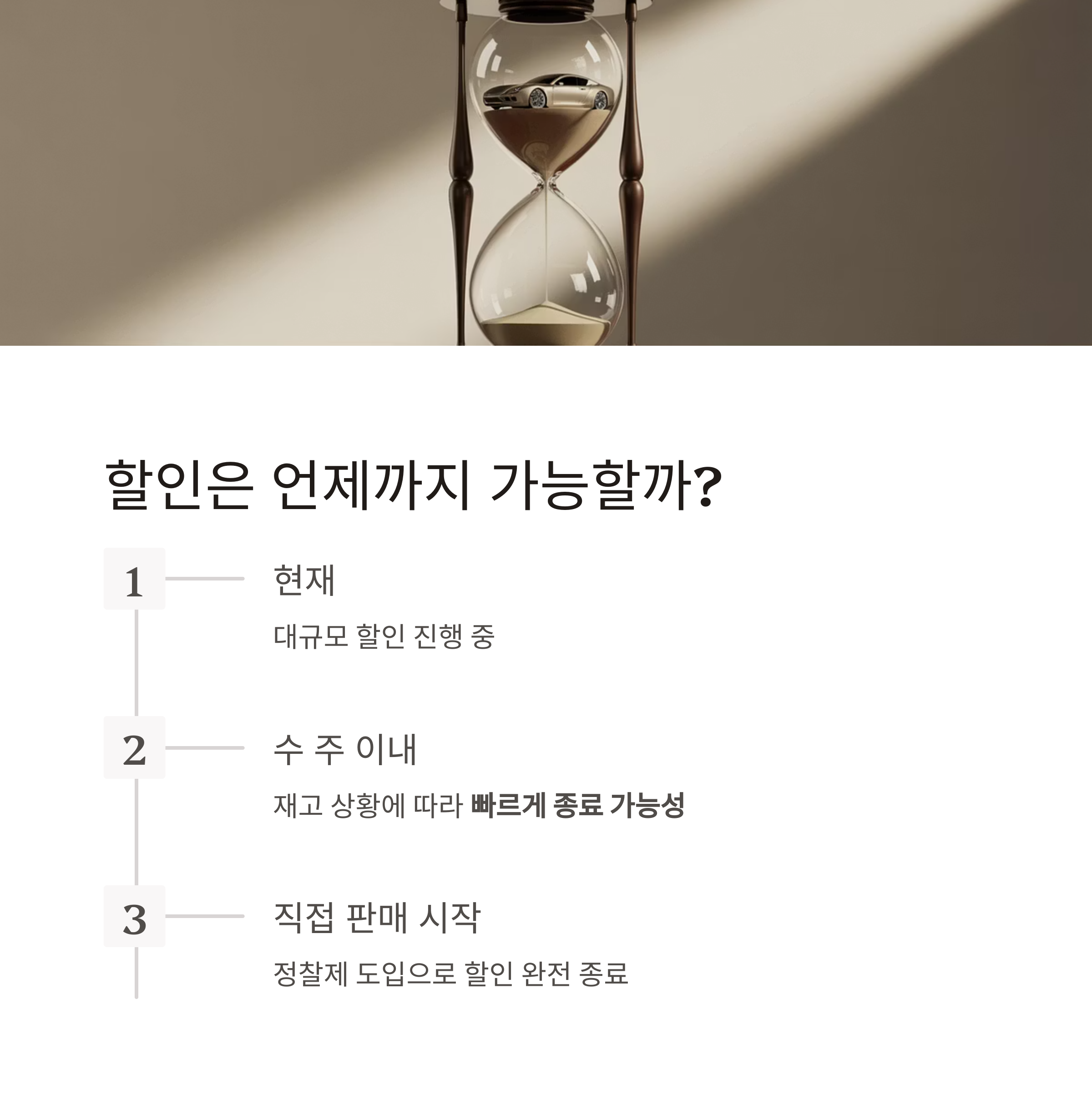 최대한 많은 차량을 재고로 남기지 않기 위해 초기 대규모 할인 정책을 택했습니다.