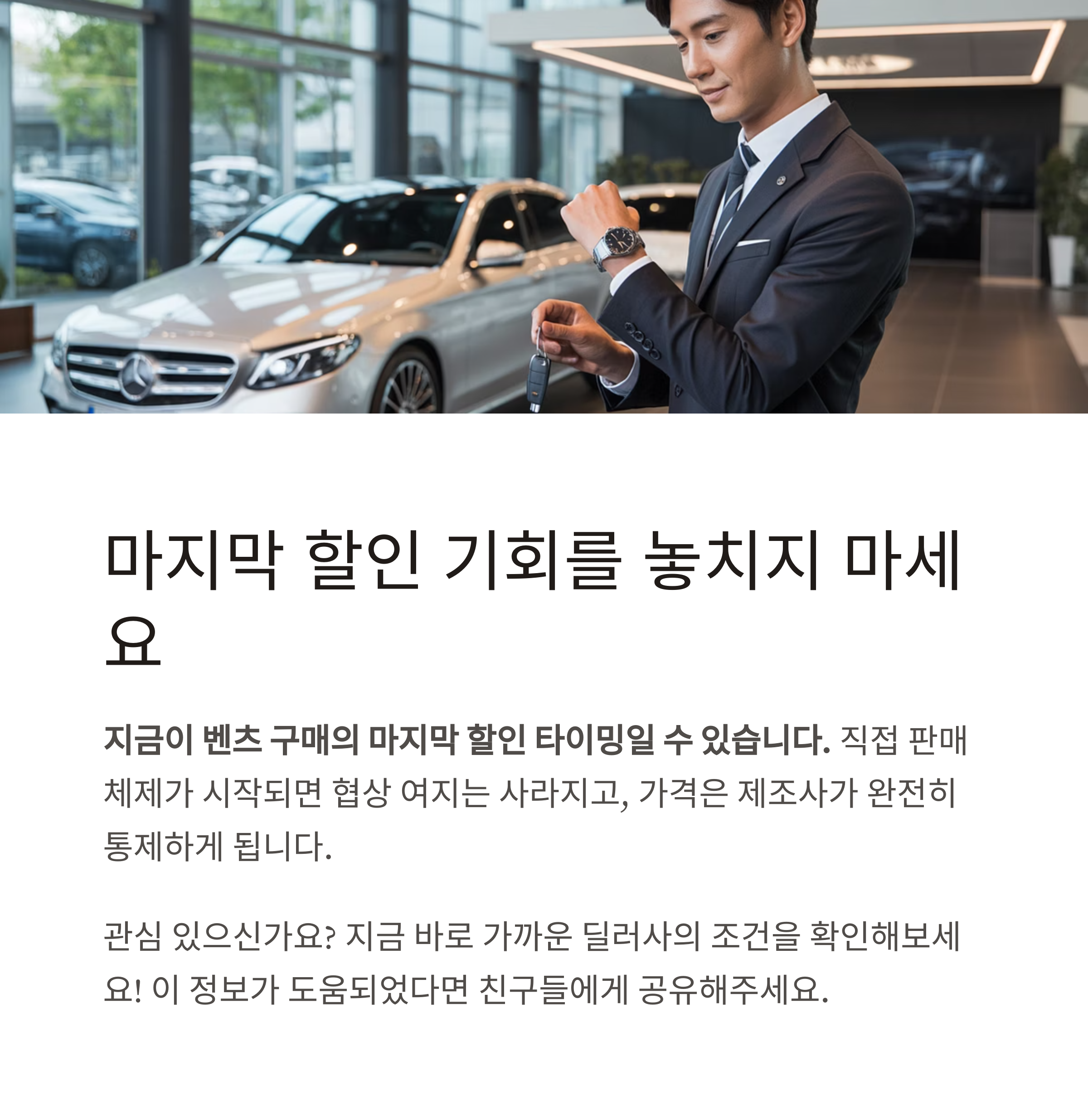 벤츠가 왜 직접 판매 전환 전에 폭탄 할인을 하나요?