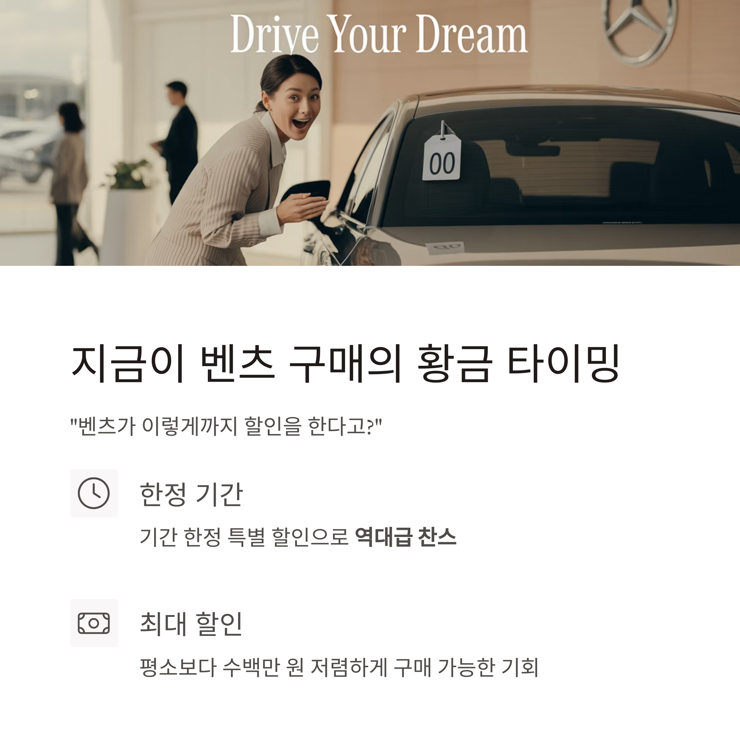 지금이 벤츠 구매의 마지막 할인 타이밍일 수 있습니다.