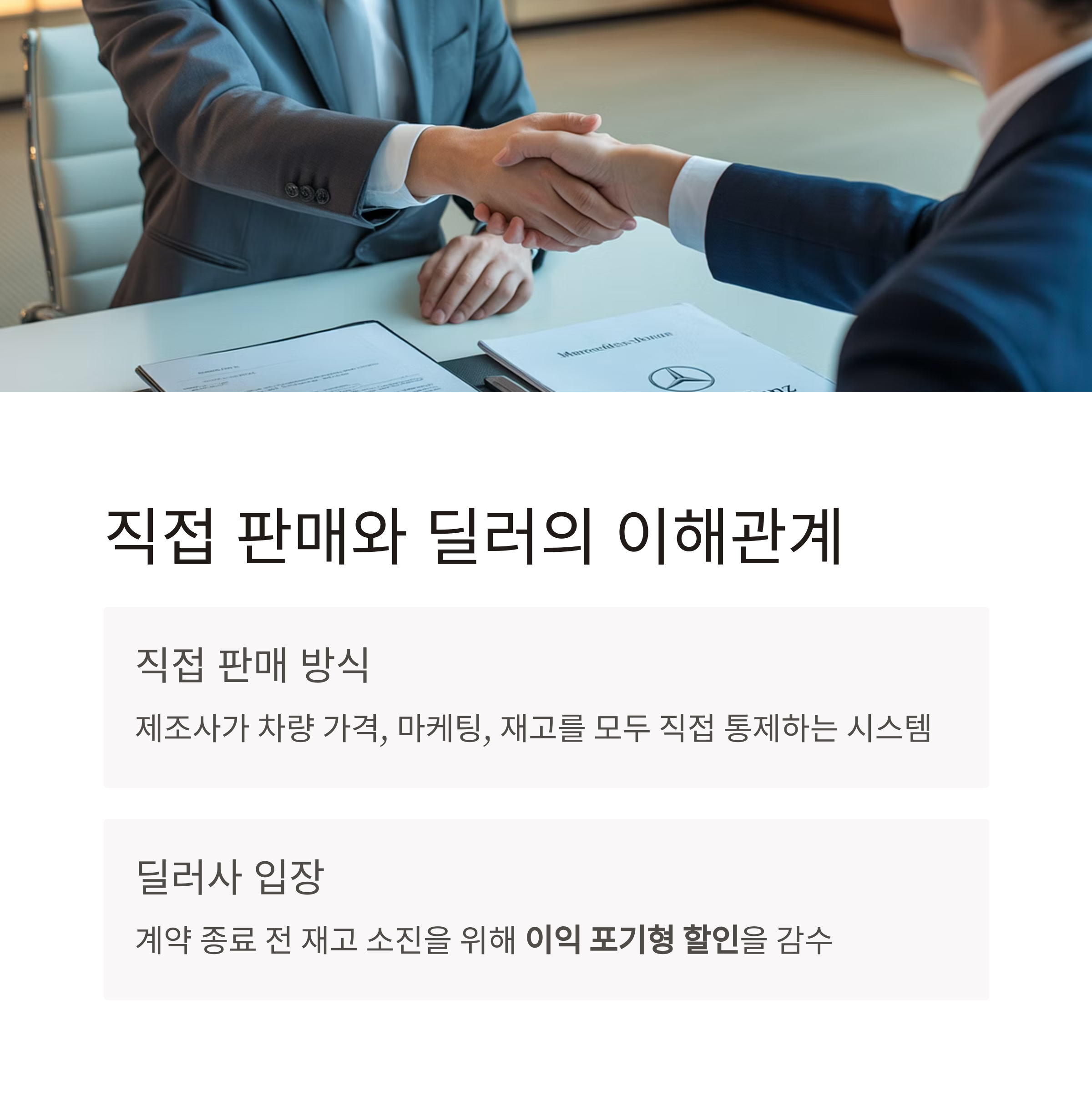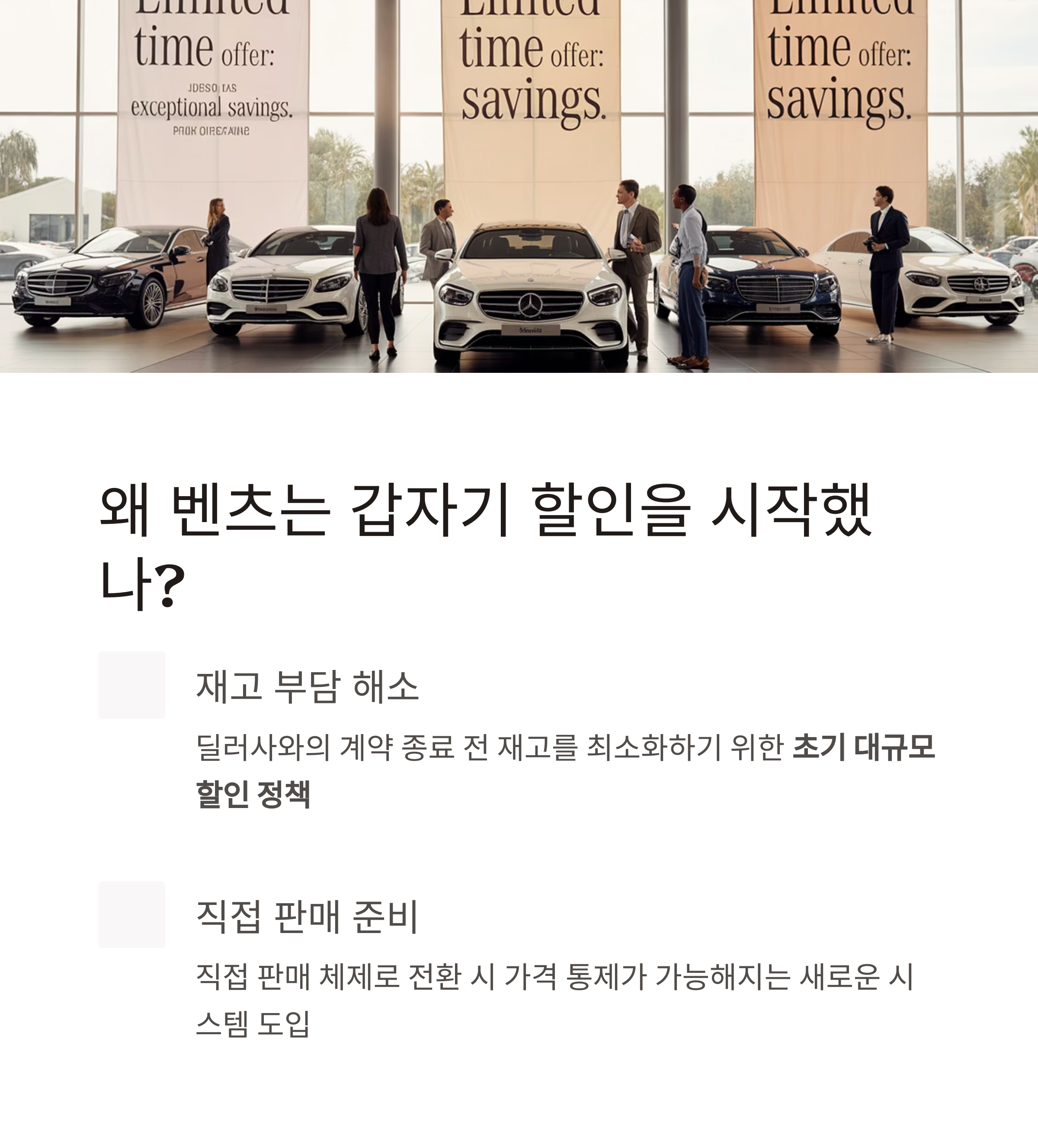 벤츠가 왜 직접 판매 전환 전에 폭탄 할인을 하나요?