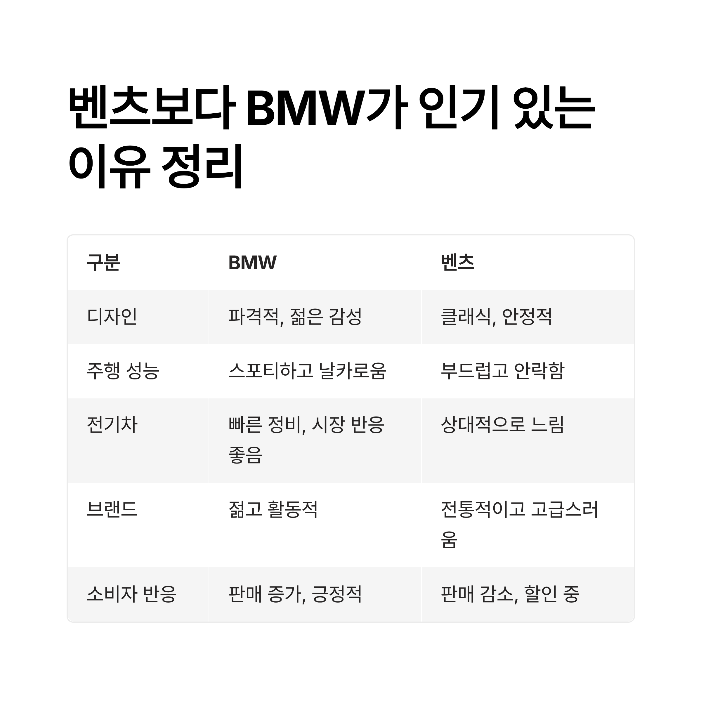 | 구분 | BMW | 벤츠 |