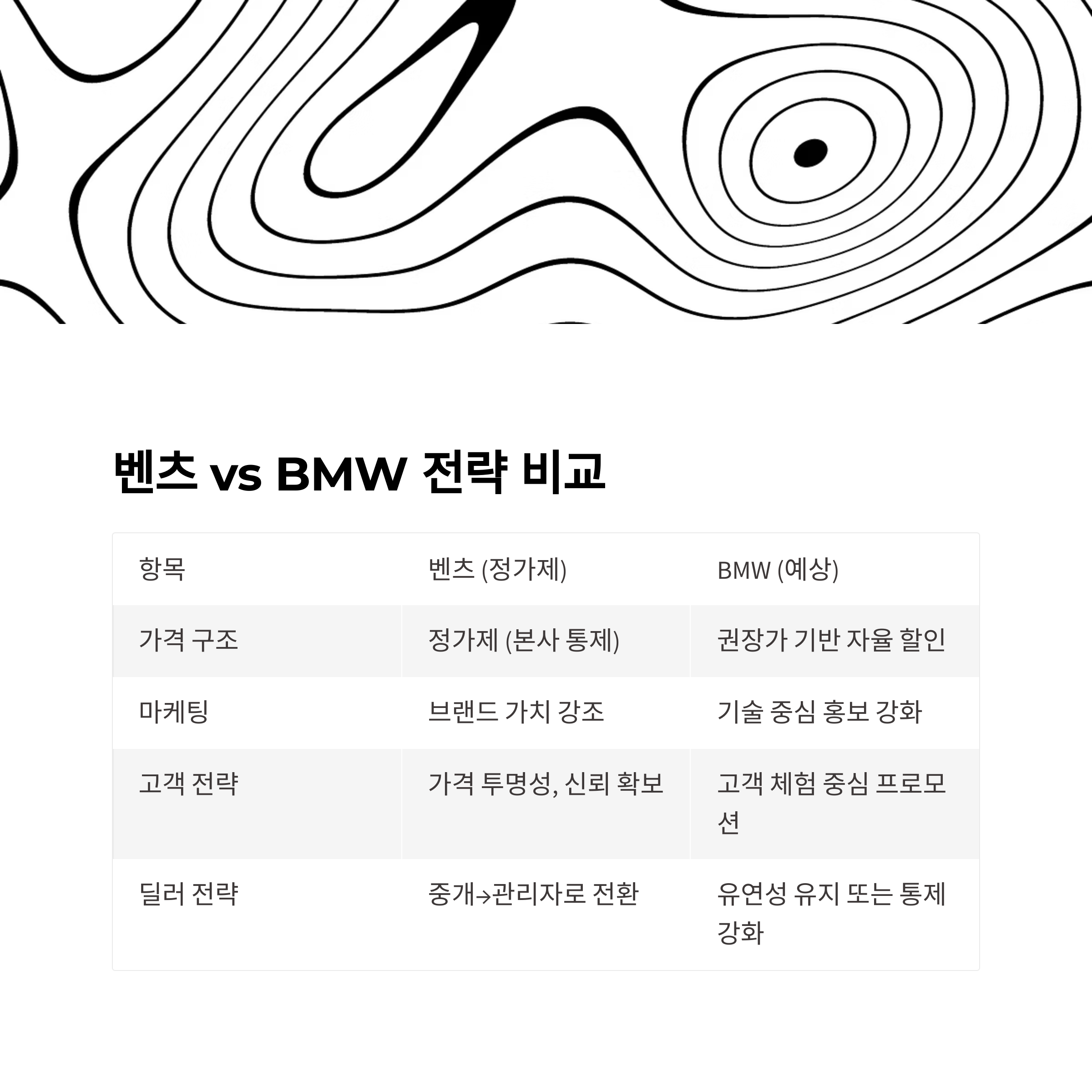 이번 글에서는 벤츠의 정가제 도입 배경을 간략히 짚고, 이에 따른 BMW의 전략적 대응 가능성을 예측해봅니다.