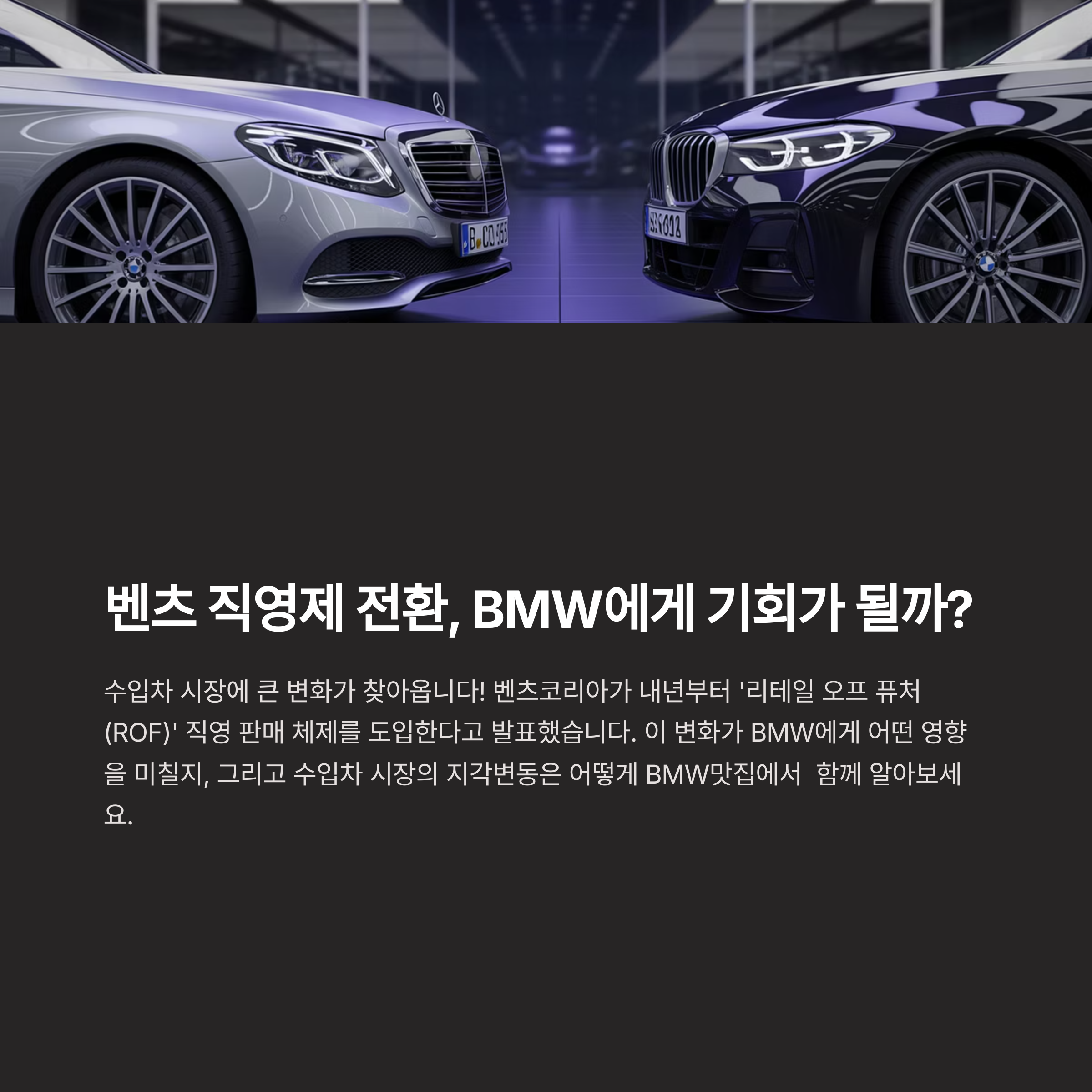 수입차 시장의 빅뉴스가 발표됐습니다. 벤츠코리아가 내년부터 국내에서 직영 판매 체제, 즉 ‘리테일 오프 퓨처(ROF)’를 본격 도입하겠다고 밝혔습니다. 이로 인해 수입차 시장의 지각변동이 예고되며, BMW의 역대급 판매 기록 경신 가능성도 더욱 커지고 있습니다. 이번 변화가 어떤 파장을 불러올지, 그리고 그 중심에 있는 브랜드들의 전략은 무엇인지 하나씩 살펴보겠습니다.