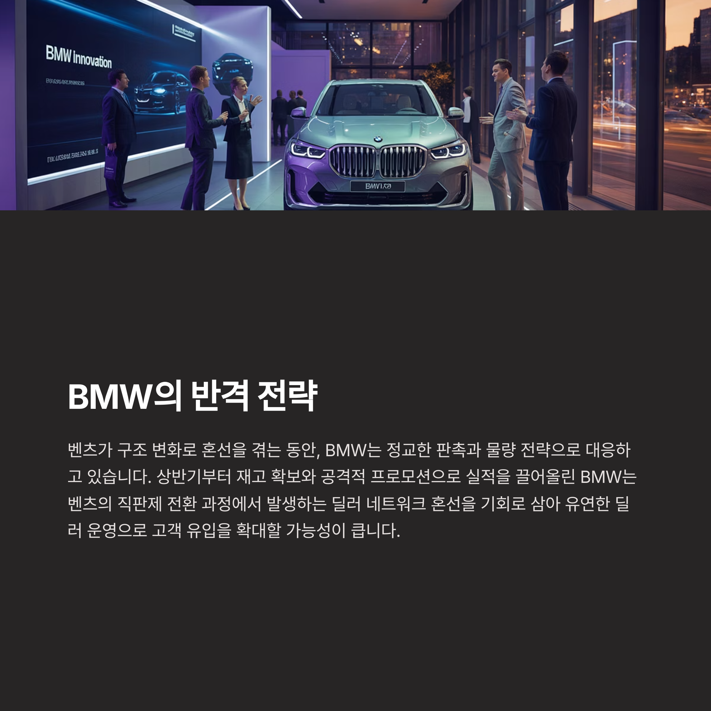 BMW는 유연한 딜러 운영으로 고객 유입을 확대할 가능성이 큽니다.