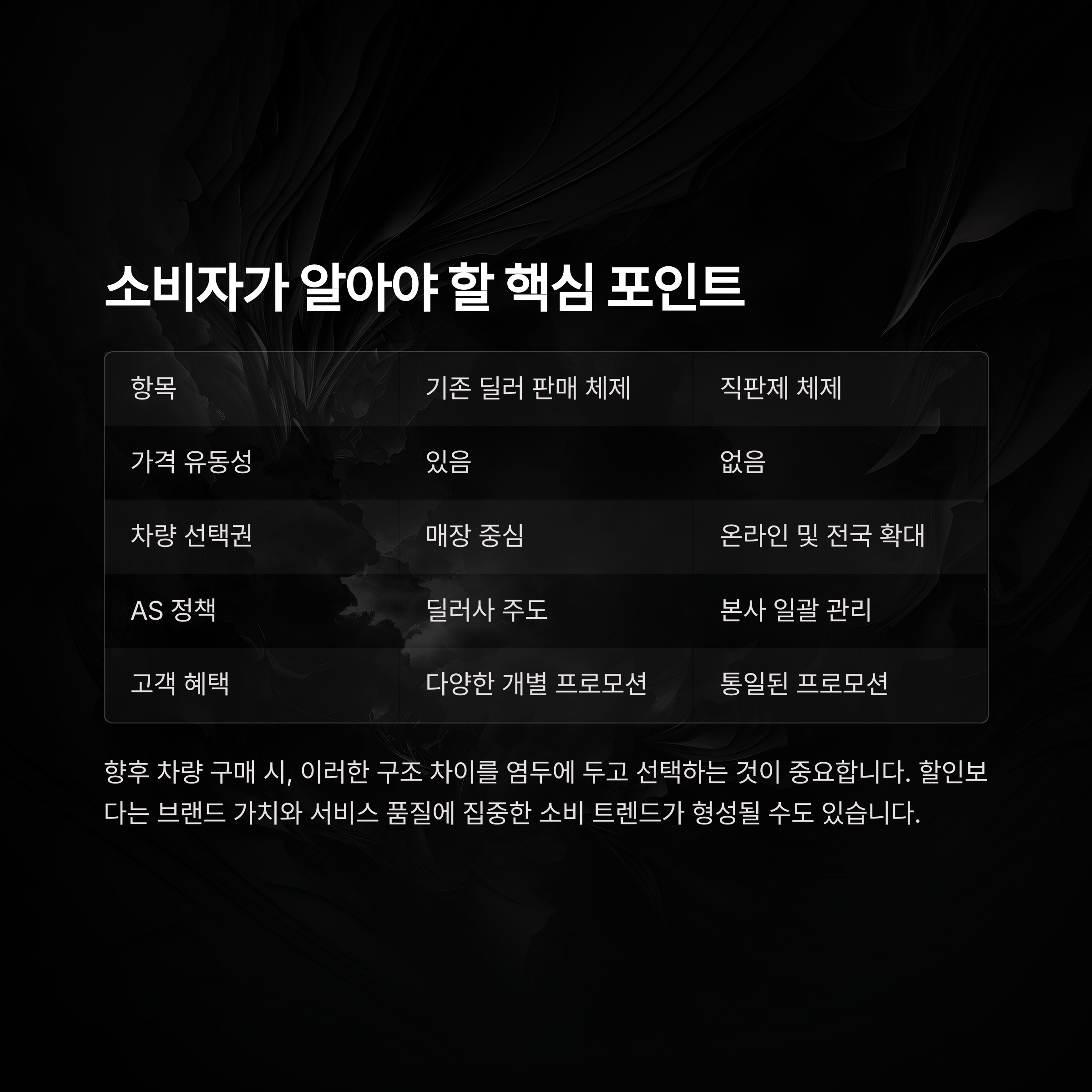 향후 차량 구매 시, 고객들은 이런 구조 차이를 염두에 두고 선택해야 할 필요가 있습니다.