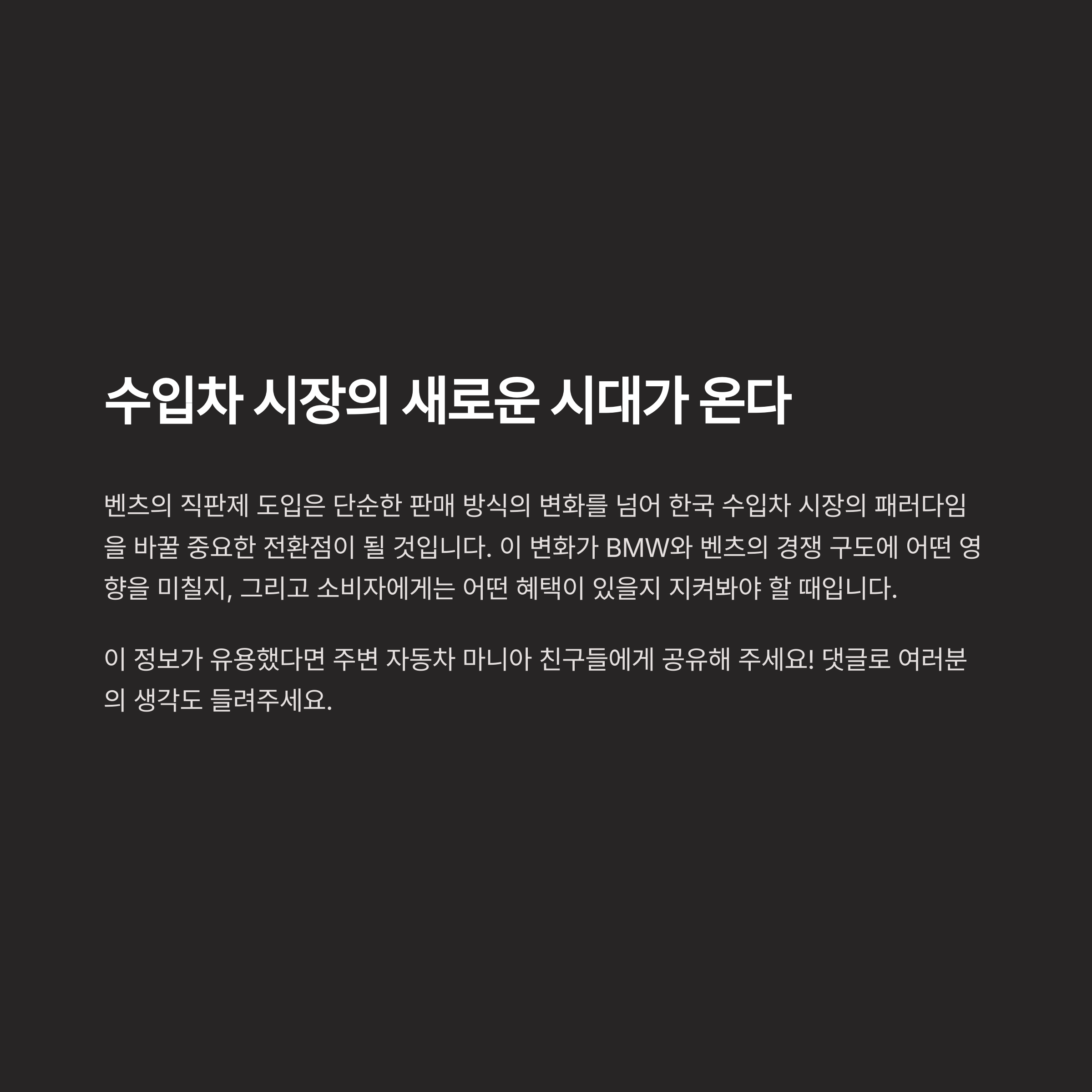 직판을 통해 수익 구조를 개선하려는 벤츠의 의도가 엿보입니다.
