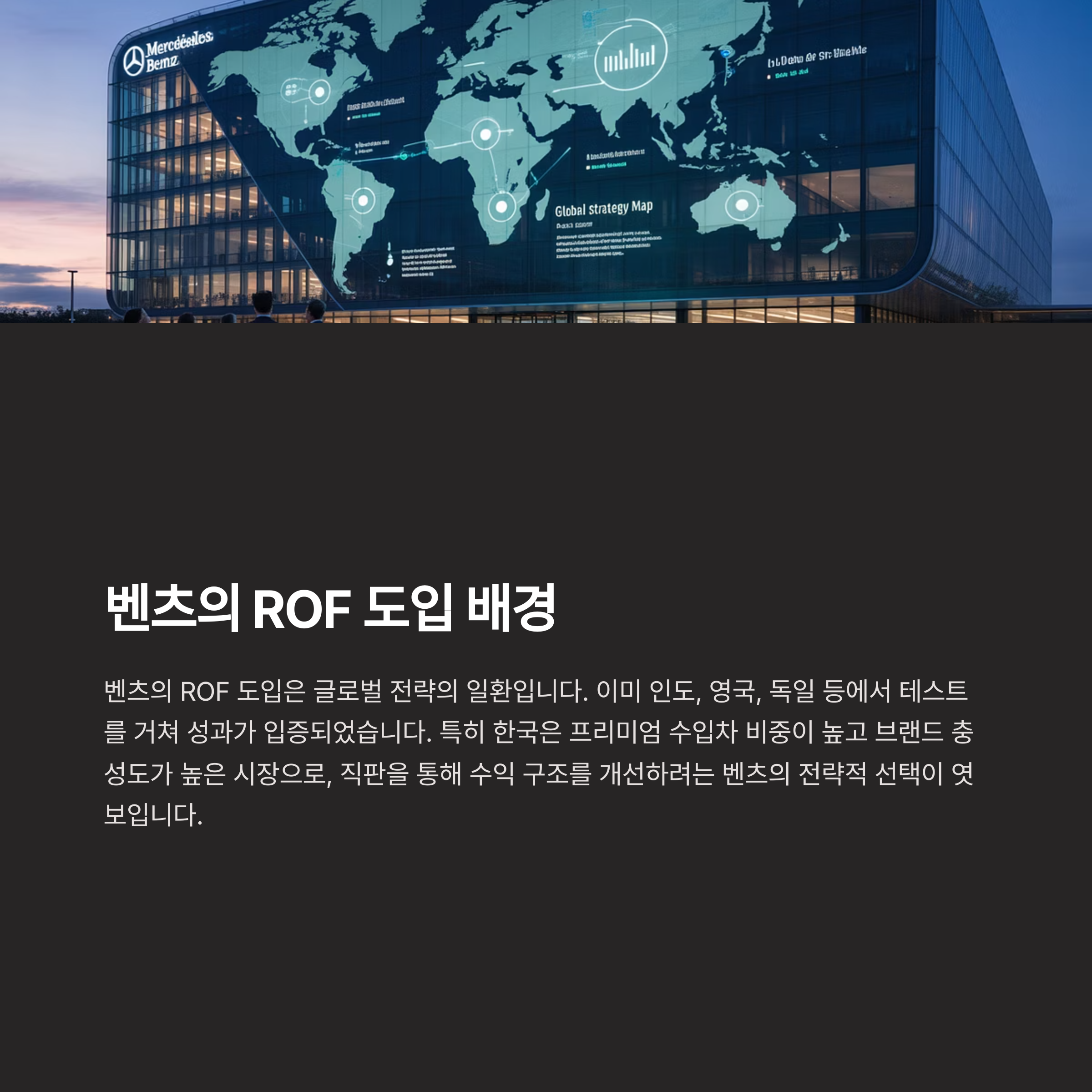 벤츠가 ROF를 국내에 도입한 배경에는 글로벌 전략의 일환이라는 점이 큽니다.