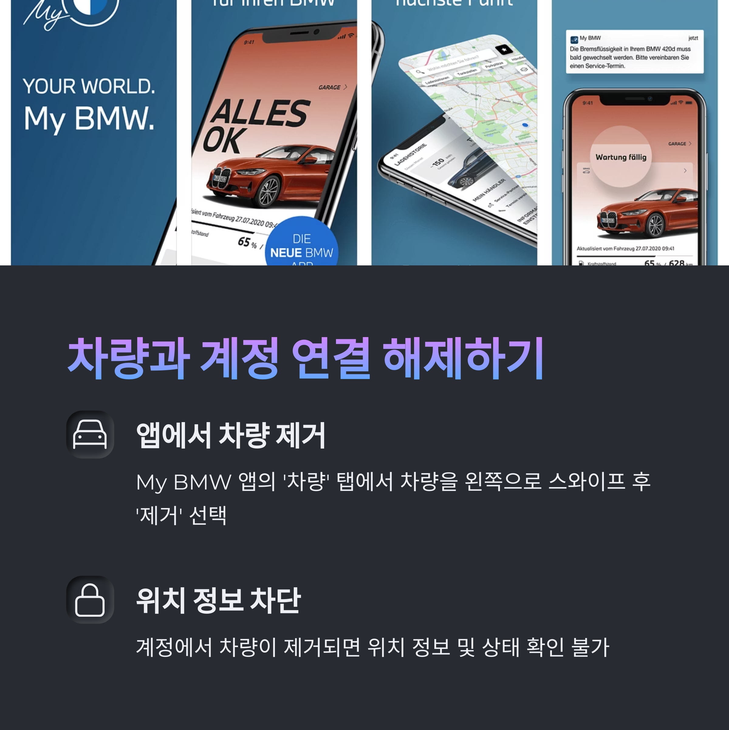 | My BMW 앱 | 차량 제거 | 매우 높음 | 앱 사용 시 차량 정보 미제공됨 |