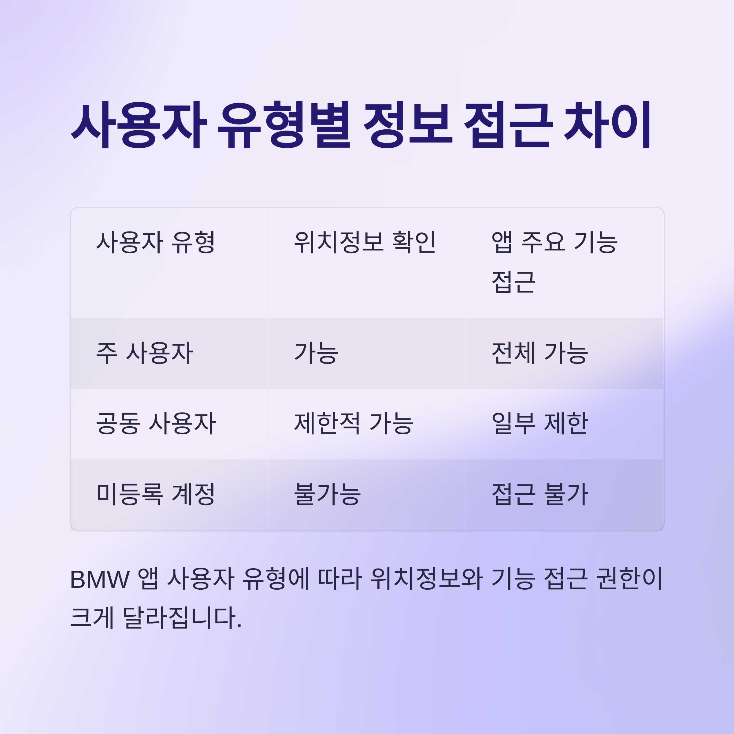 아래 표로 BMW 앱 사용자 유형별 정보 접근 차이를 확인해보세요