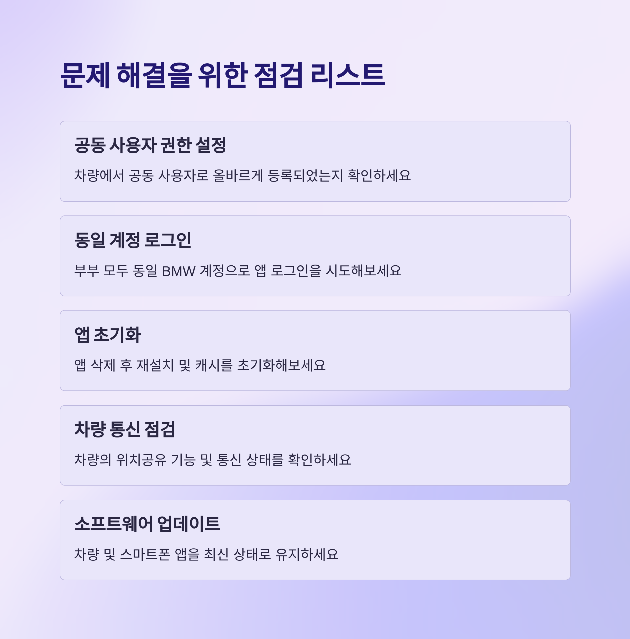 | 동일 계정 로그인 여부 | 부부 모두 동일 BMW 계정으로 앱 로그인 시도 |