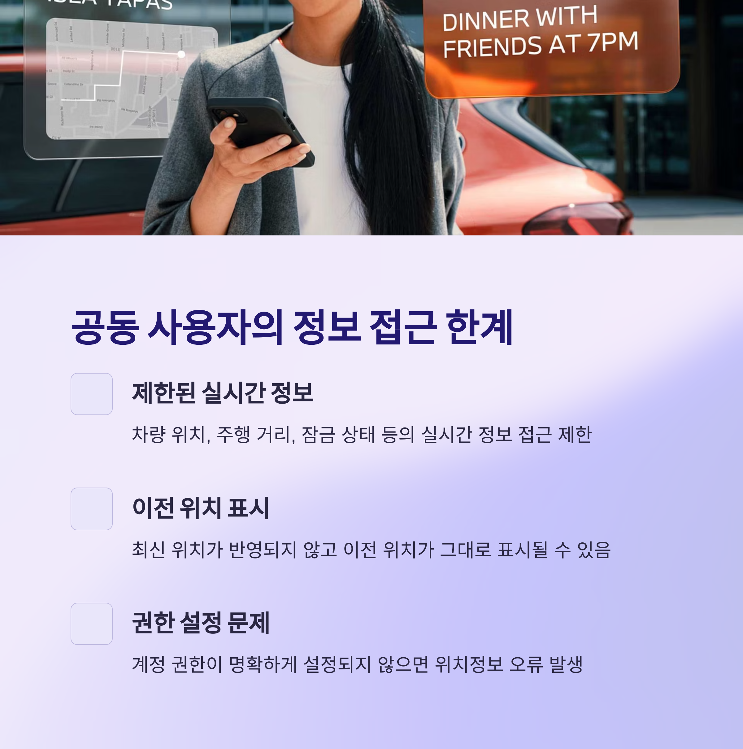 공동 사용자는 차량 위치, 주행 거리, 잠금 상태 등의 실시간 정보에