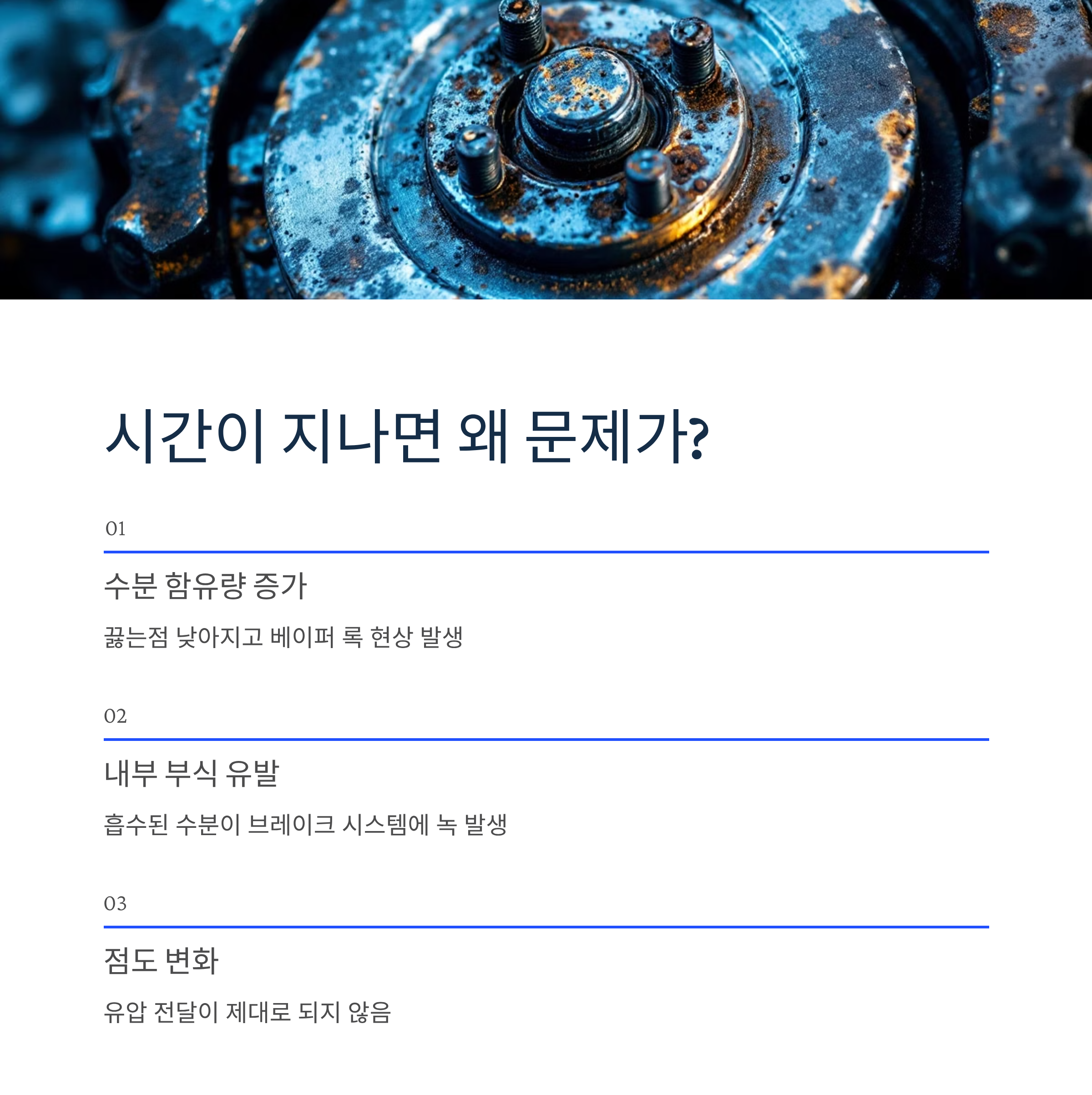 | 브레이크 부품 손상 | 부식된 오일이 부품 마모 유발 |