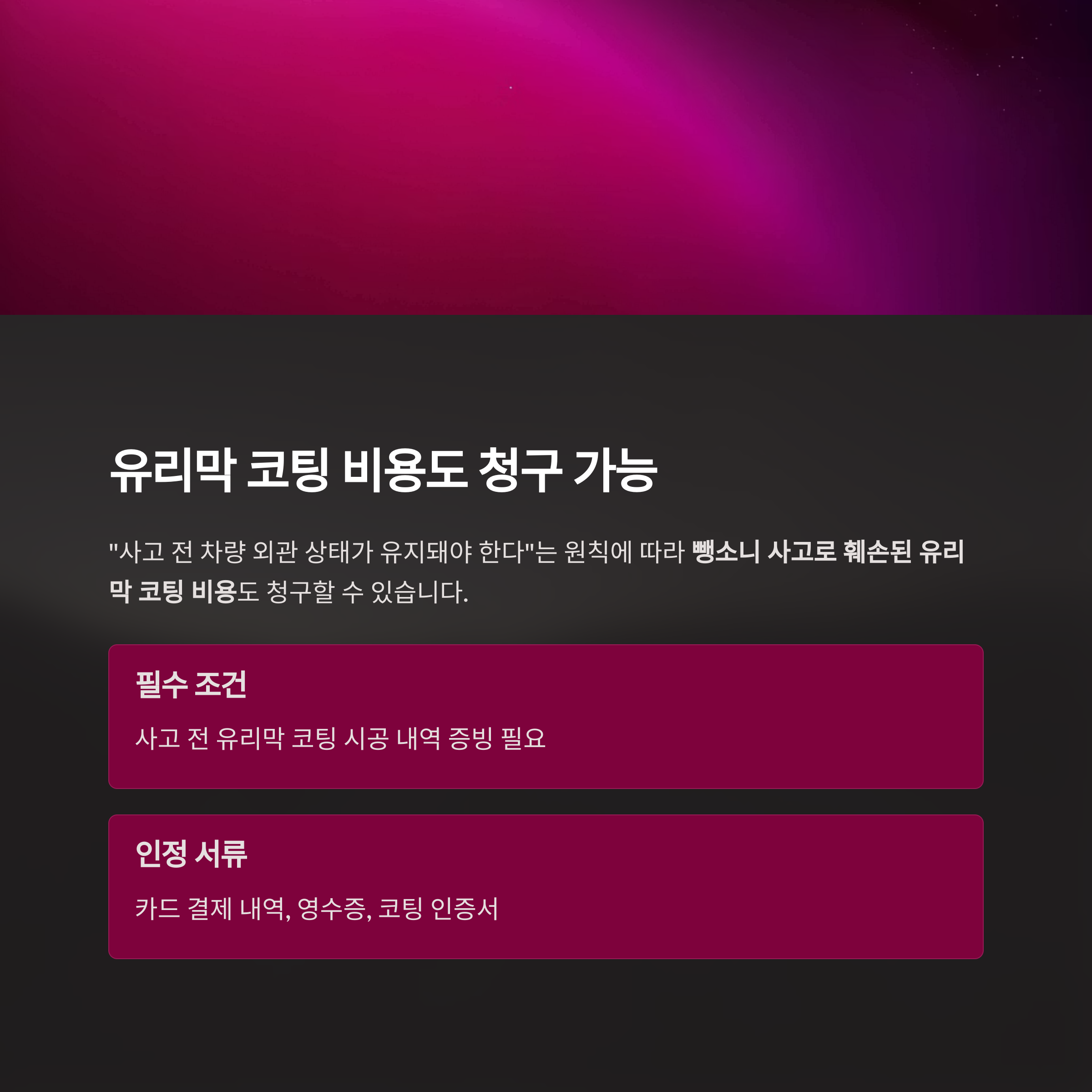 조건은 단 하나, '사고 전 유리막 코팅 시공 내역이 있어야' 합니다