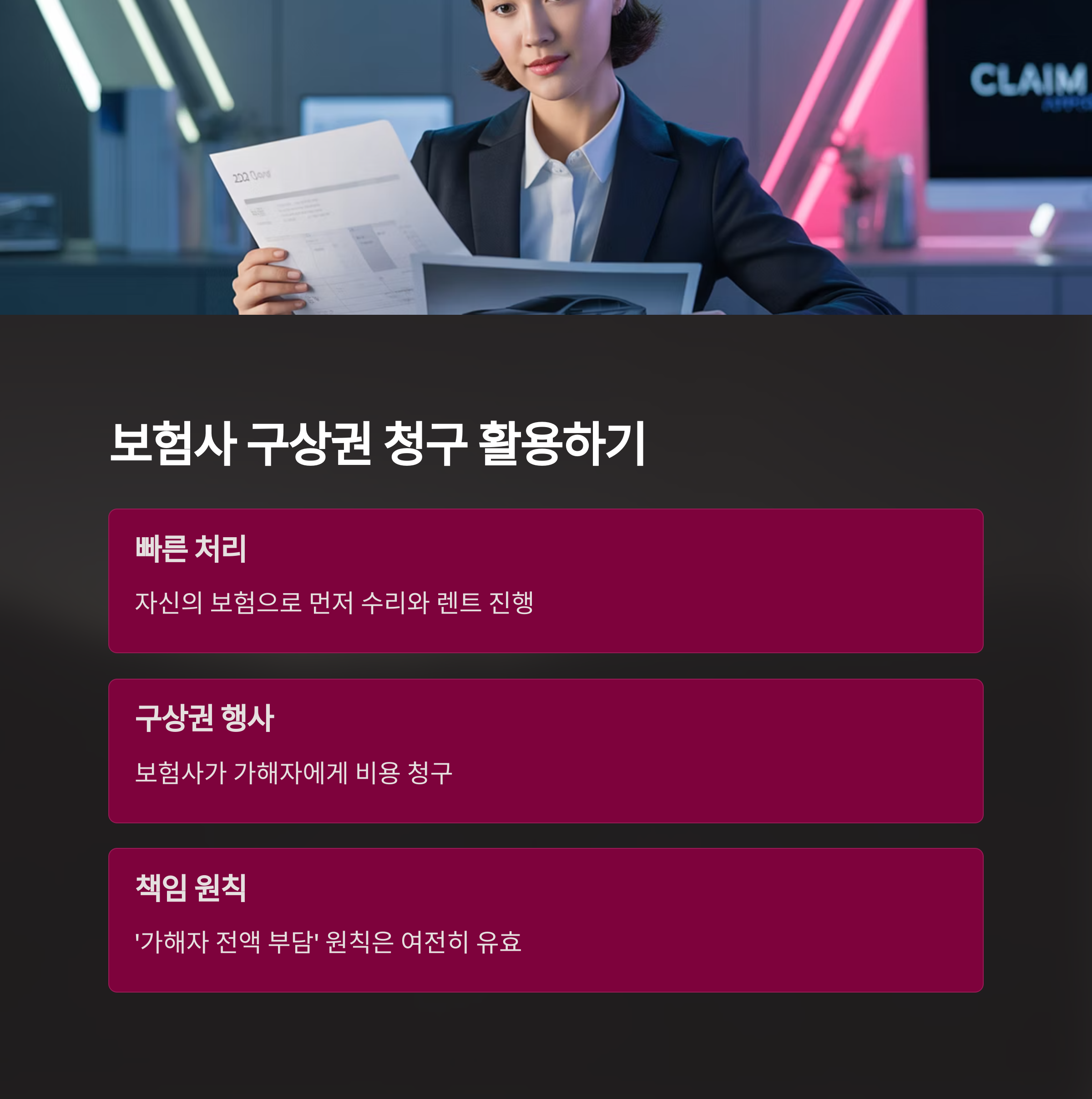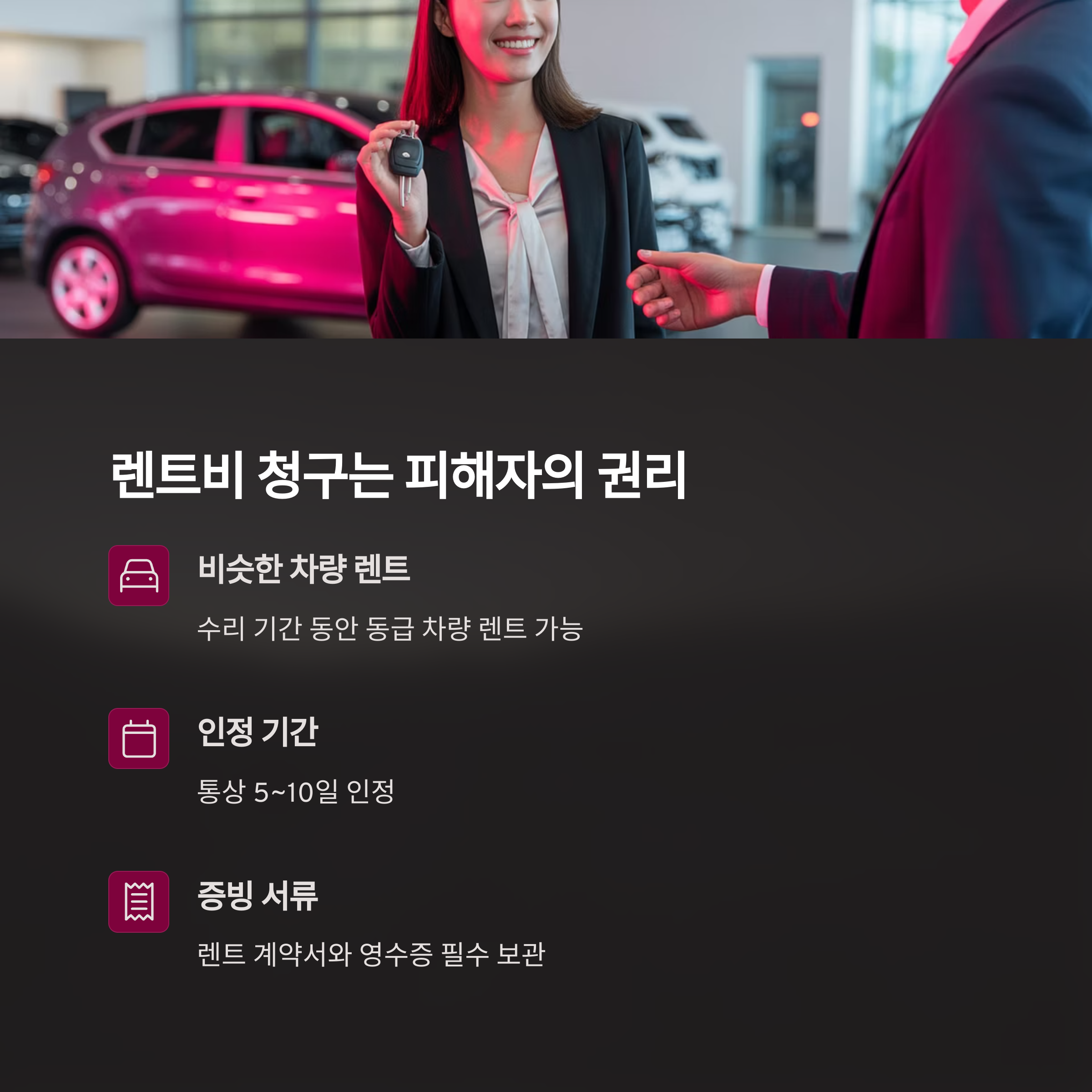 이 과정에서 피해자는 보험 처리로 빠른 수리와 렌트를 먼저 받을 수 있고