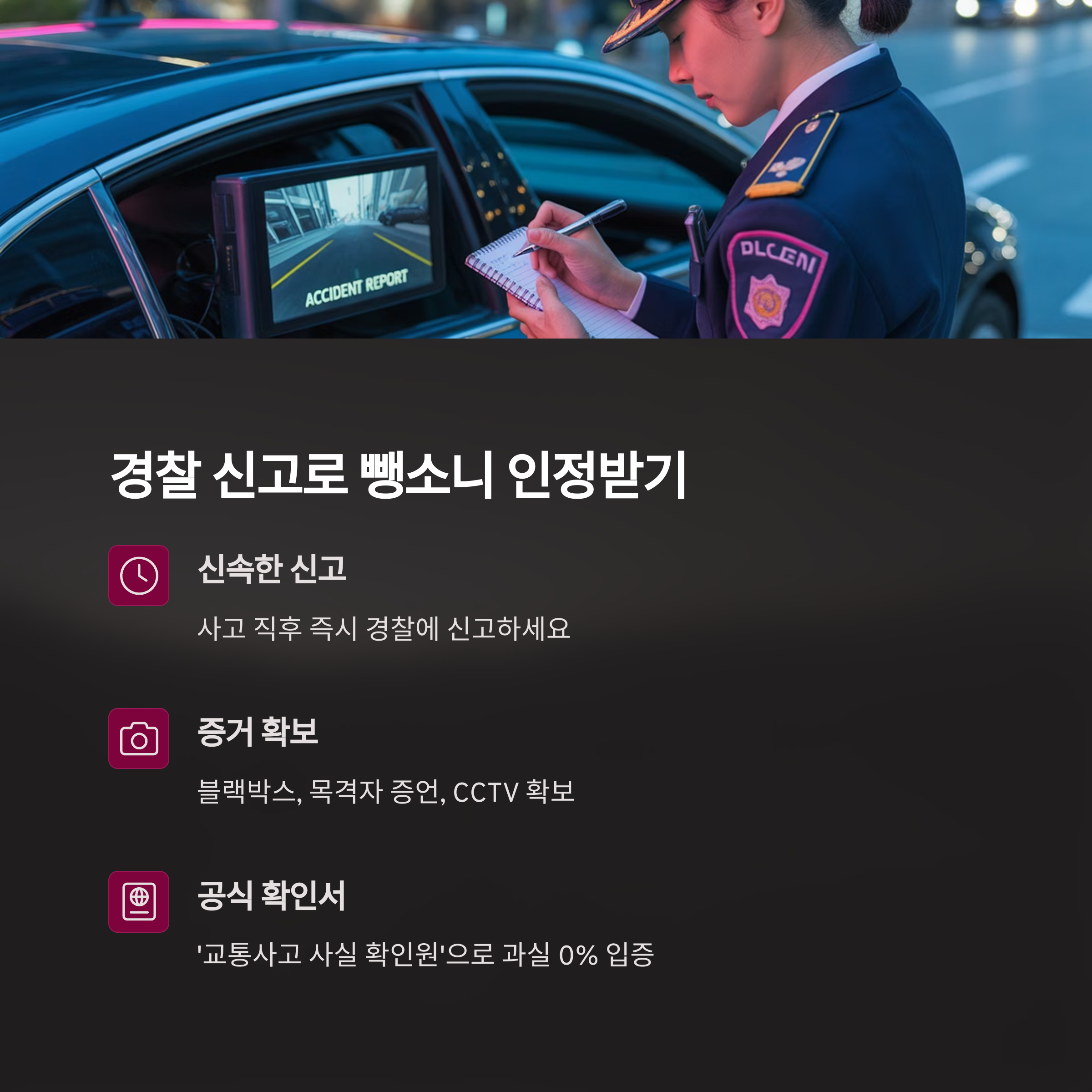 향후 보험 처리나 손해배상 청구가 원활합니다.