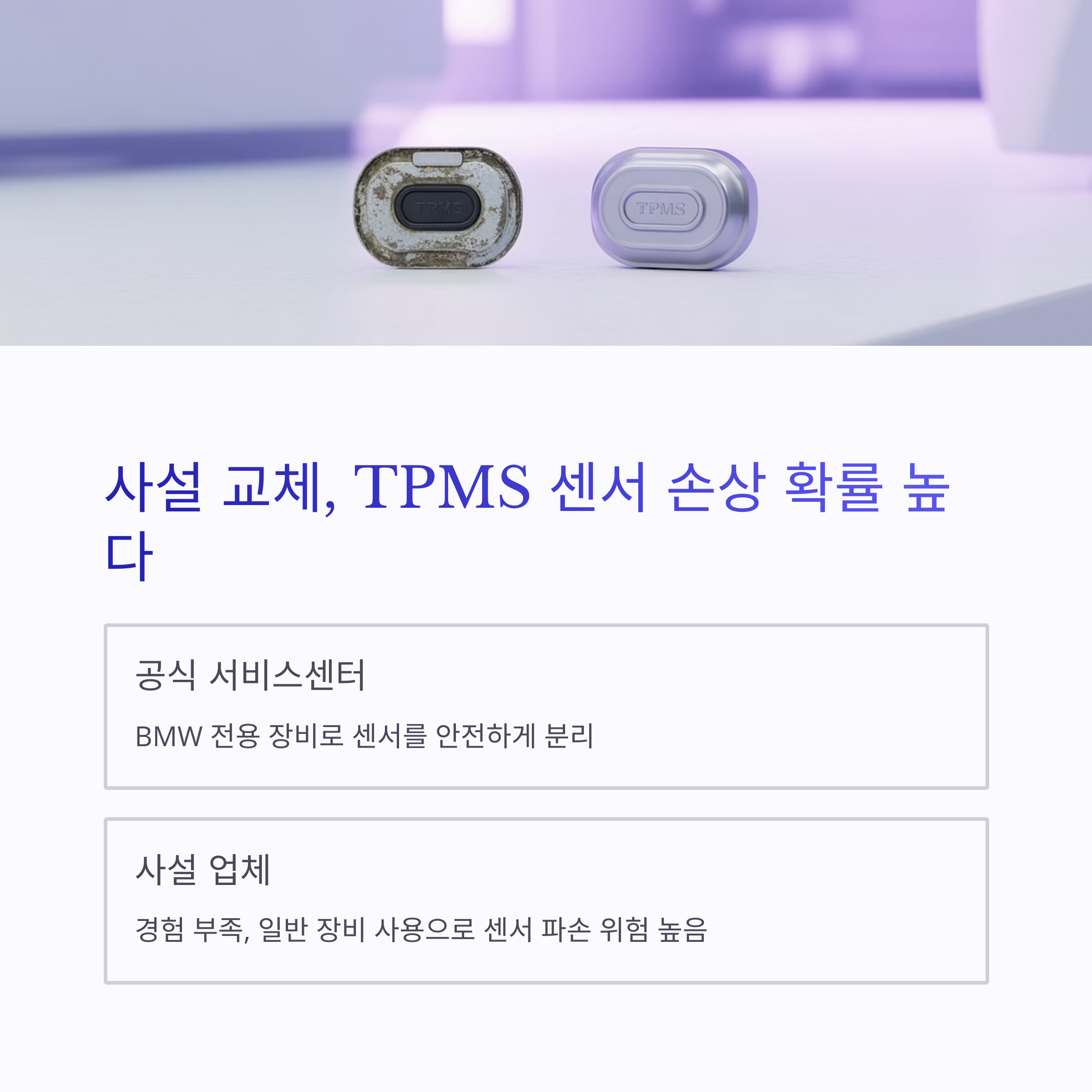 BMW 차량을 사설 업체에서 타이어 교체 시 종종 발생할 수 있는 문제에 대해