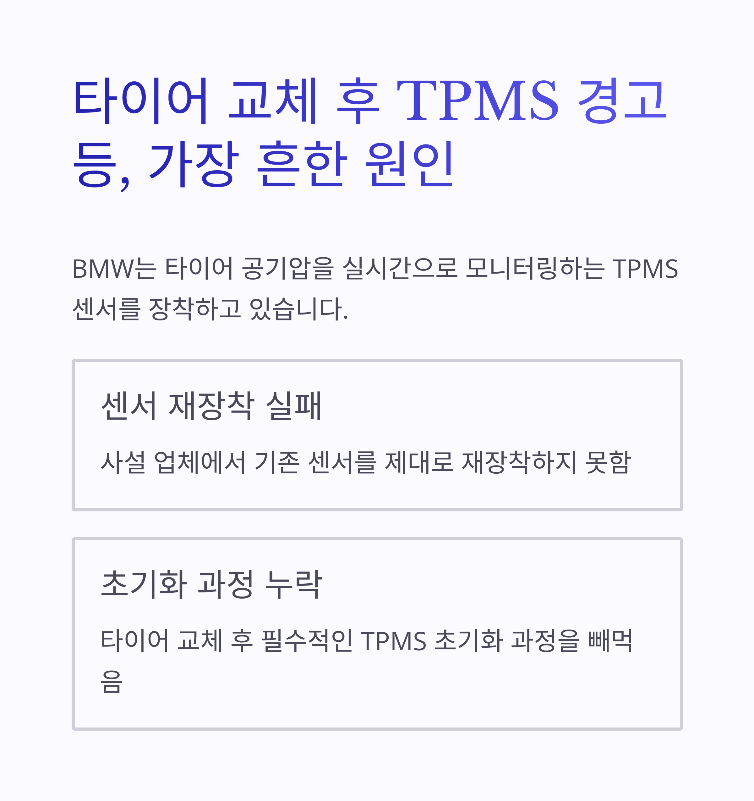 BMW 차량을 사설 업체에서 타이어 교체 시 종종 발생할 수 있는 문제에 대해