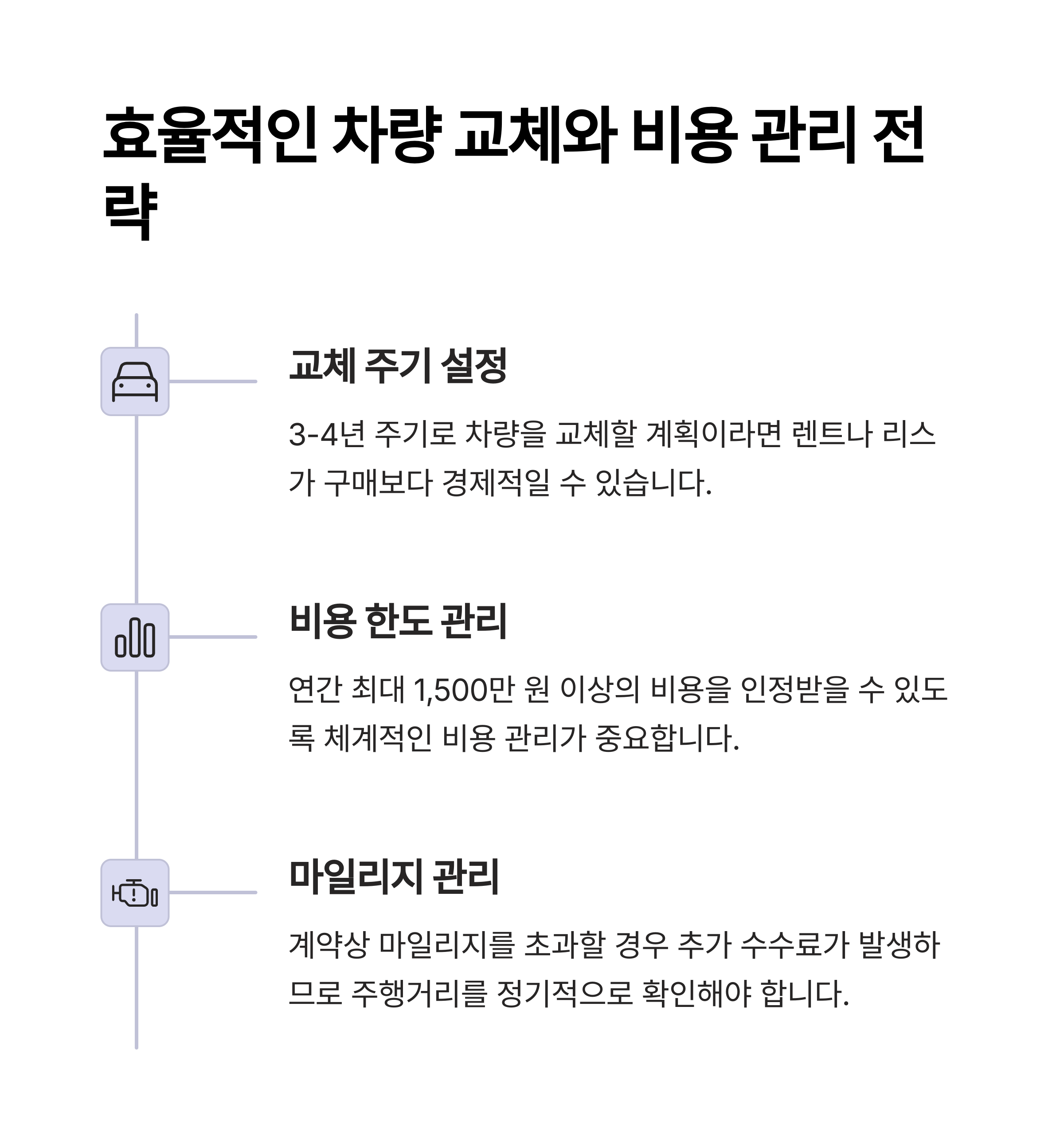 리스와 구매 방식은 차량 사용 기간과 비용에 따라 선택하면 효과적입니다.