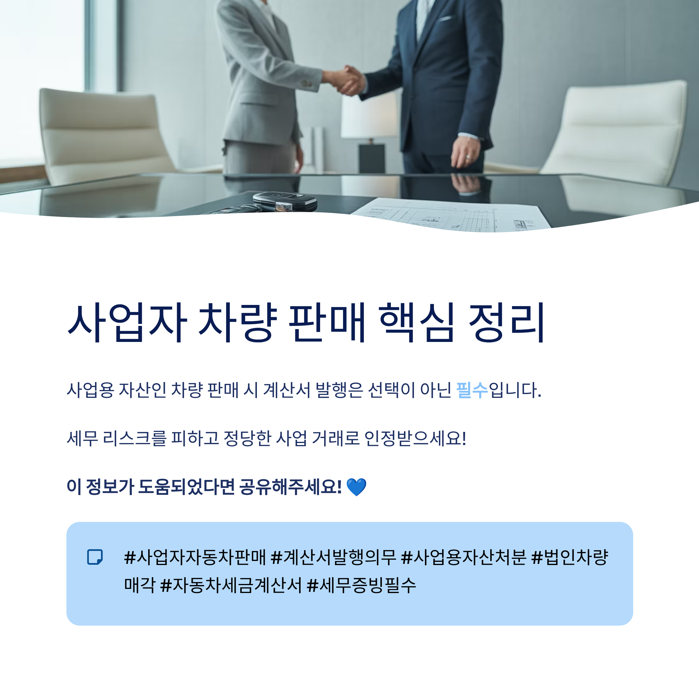 사업자가 보유하던 차량을 처분할 때, 많은 분들이 단순한 개인 매각으로 오해하는 경우가 많습니다. 하지만 이 차량이 사업용 자산으로 등록되어 있었다면, 매각 행위 또한 ‘과세 대상 거래’로 간주되어 계산서나 세금계산서를 반드시 발행해야 하는데요. 이를 간과하면 세금 추징이나 가산세 등의 불이익을 받을 수 있습니다. 이번 글에서는 사업자가 자동차를 팔 때 꼭 계산서를 발행해야 하는 이유와 그 배경을 쉽게 정리해드릴게요.