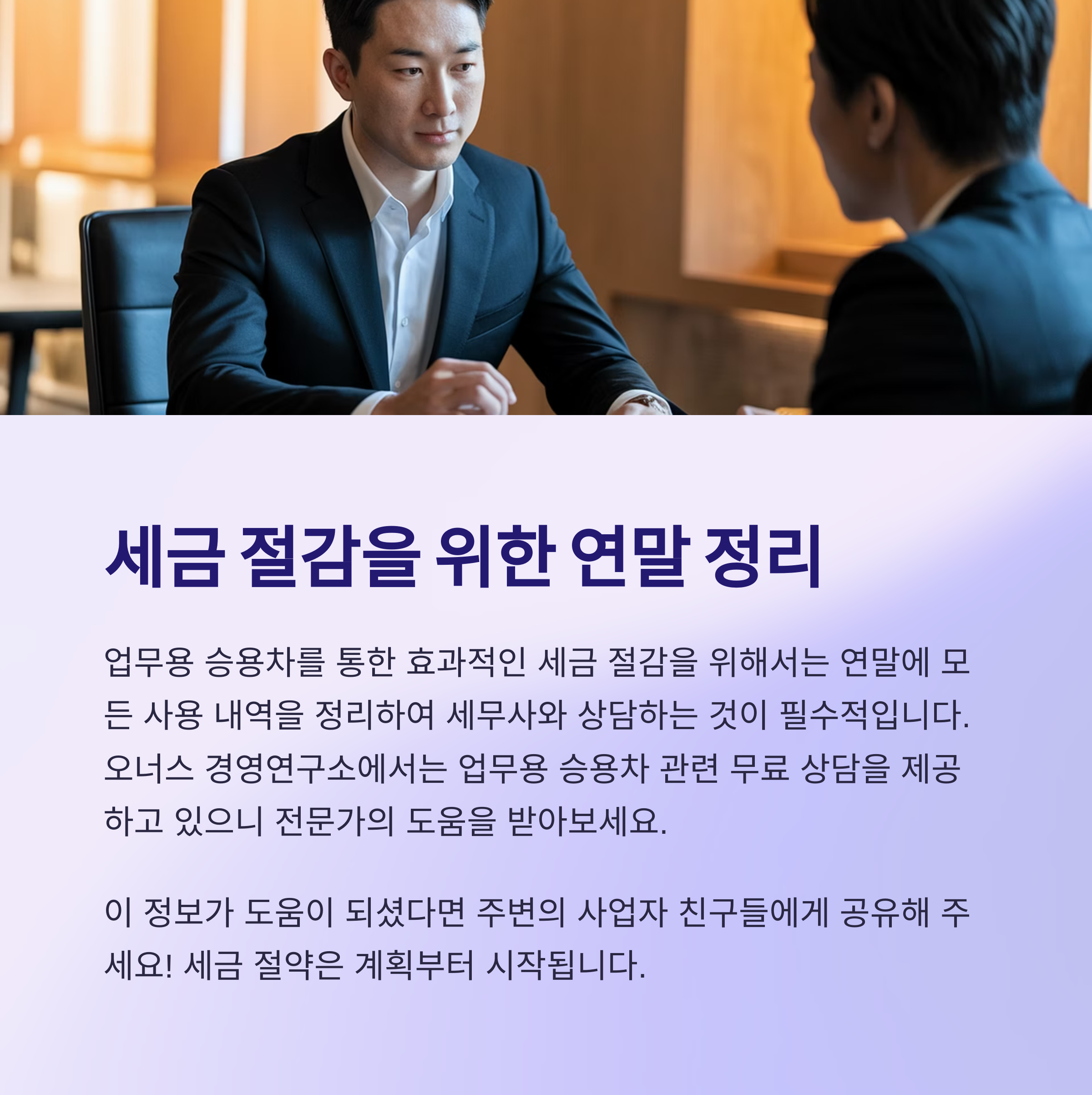 리스 계약 시 "업무용"으로 명시된 계약서가 필요함. 매년 12월, 확정 신고 전 세무 컨설팅 필수.