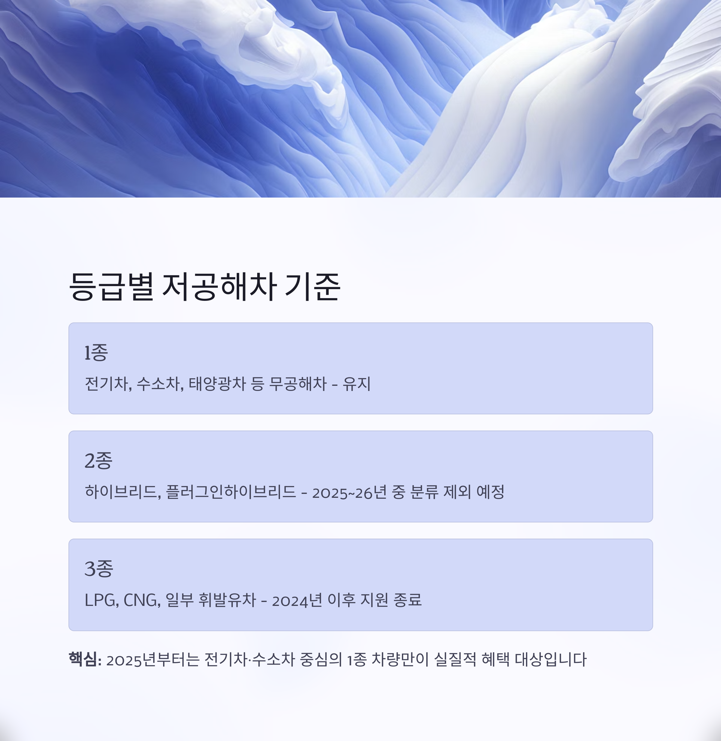 | 2종 | 하이브리드, 일부 배출저감 경유차 | 2025~2026년부터 점진적 제외 예정 |