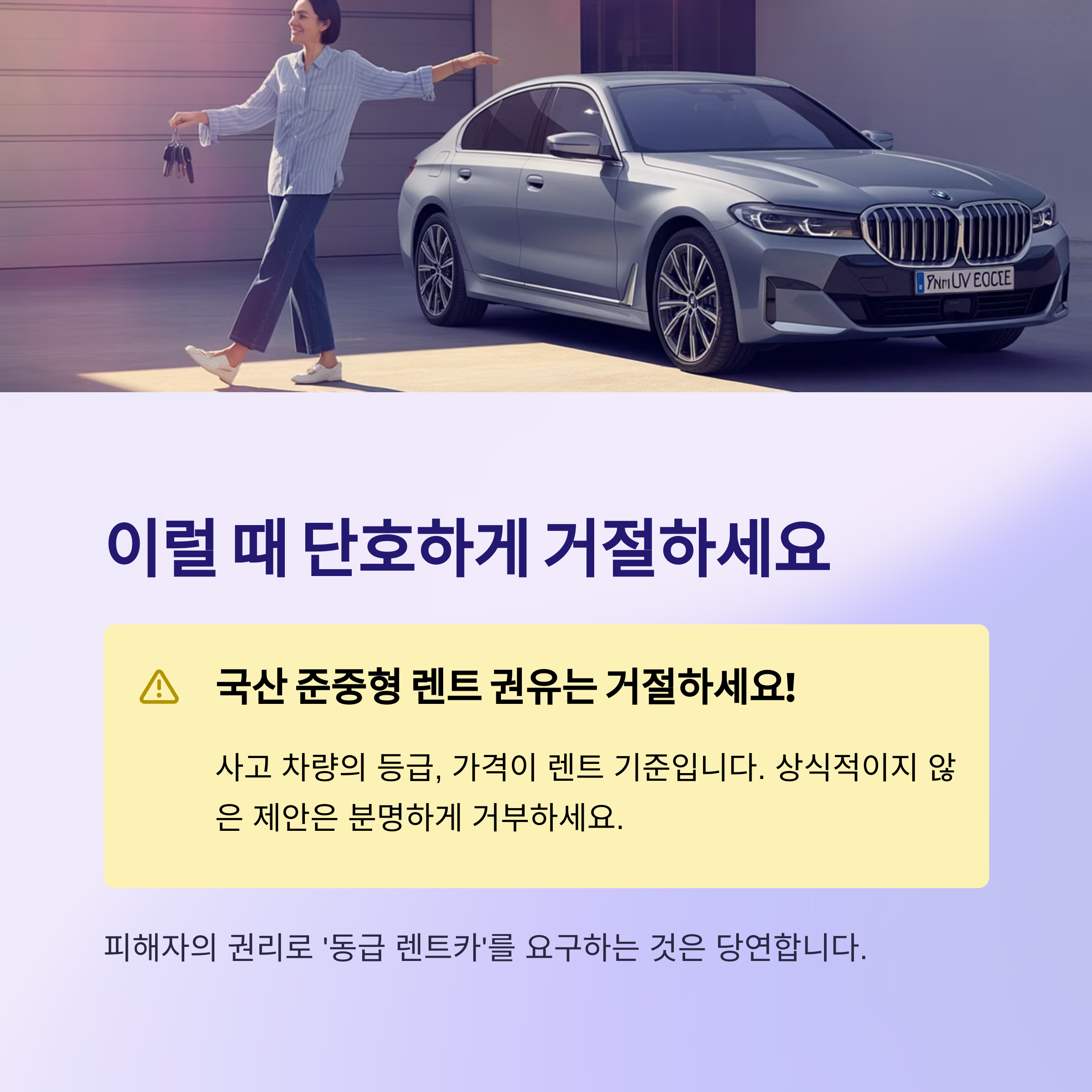 상대 보험사에서 국산 준중형 렌트를 권유해도 거절 가능합니다.