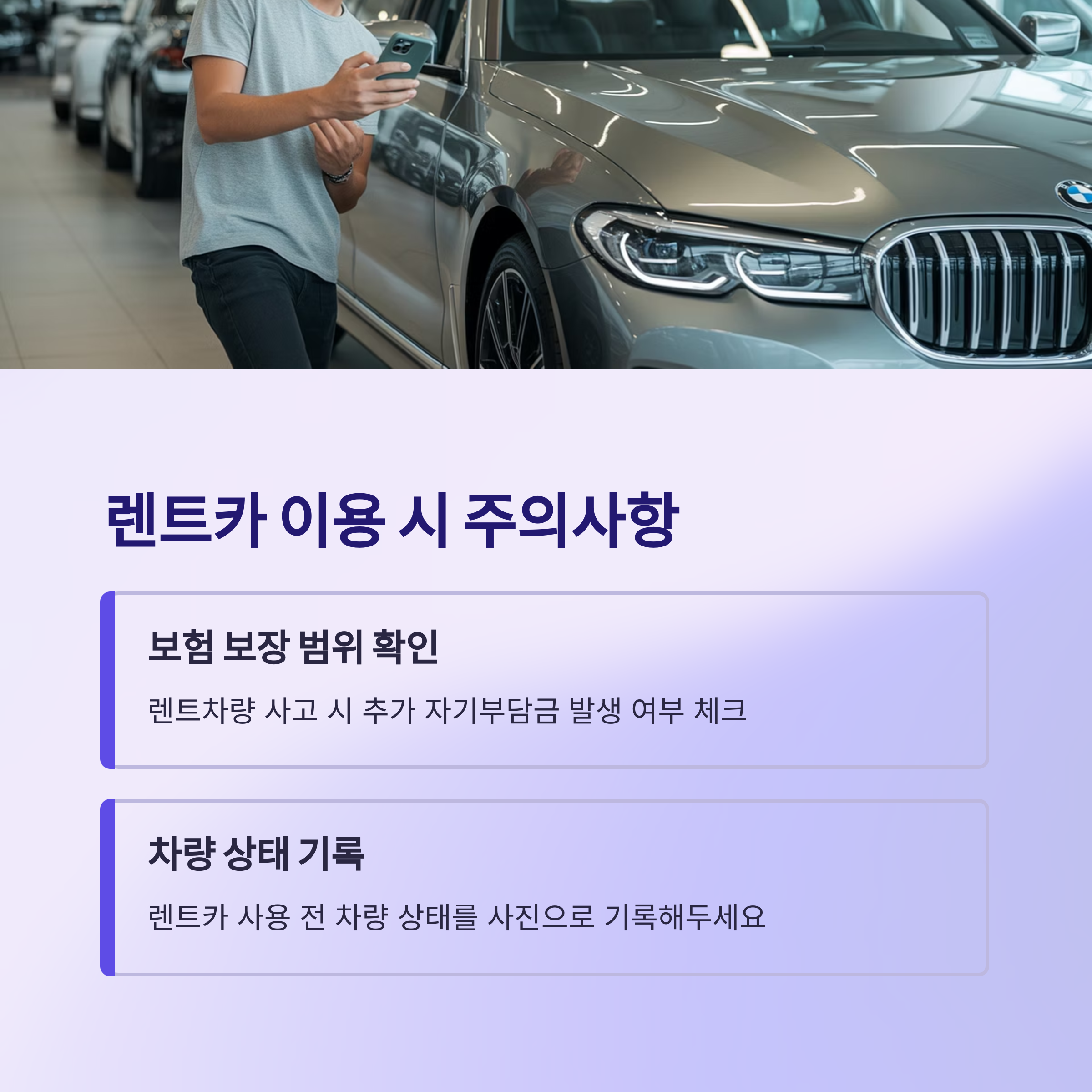 렌트카 이용 시 보험 보장 범위를 꼭 확인해야 합니다.