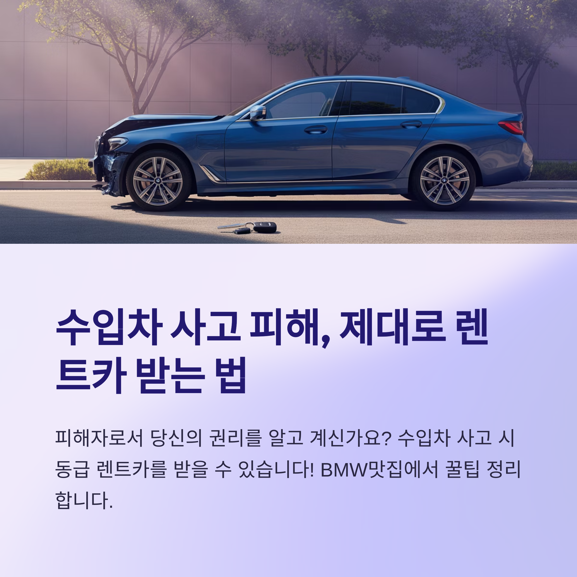 수입차 사고 피해를 입었을 때 제대로 된 렌트카 제공을 받지 못하면 더 큰 불편을 겪게 됩니다. 자동차보험의 배상책임 범위 안에서 피해자가 받을 수 있는 렌트카 지원을 어떻게 요청해야 하는지 구체적으로 설명드리겠습니다. 수입차 특성상 수리 기간도 길어지는 만큼, 올바른 절차와 권리를 알아두셔야 억울한 상황을 막을 수 있습니다.