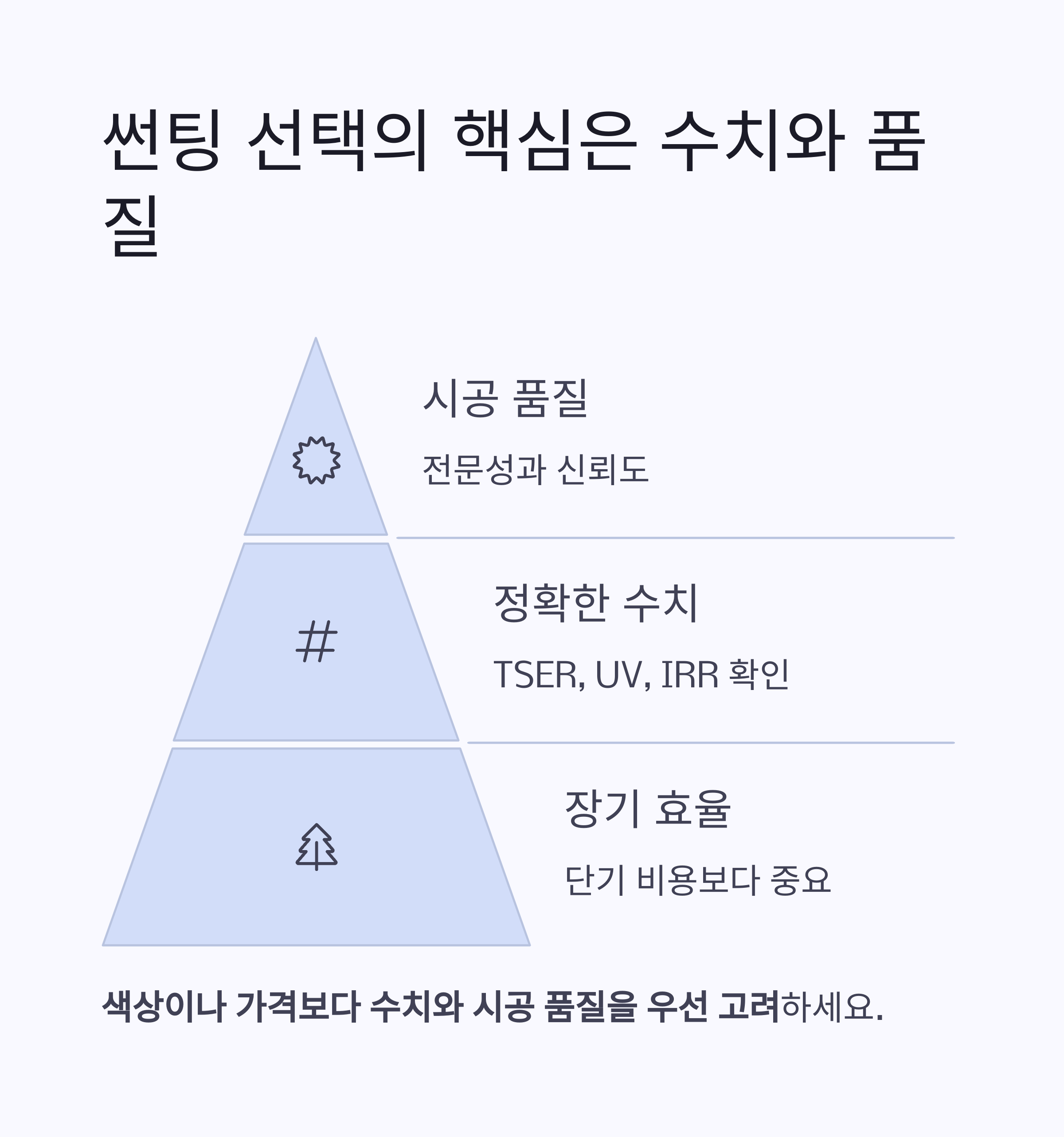 결론: 썬팅 선택의 기준은 ‘수치’와 ‘시공 품질’