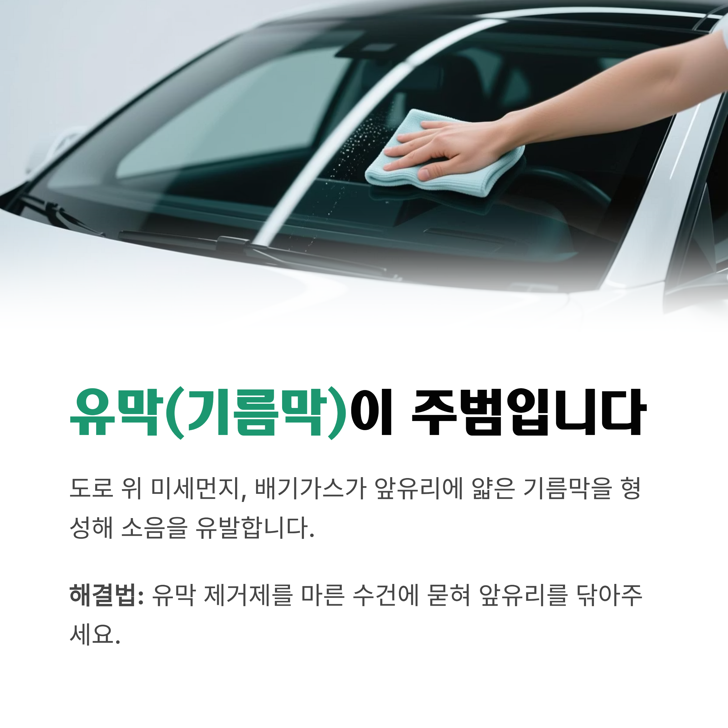 전용 유막 제거제를 마른 수건에 묻혀 앞유리를 닦아주는 것만으로도