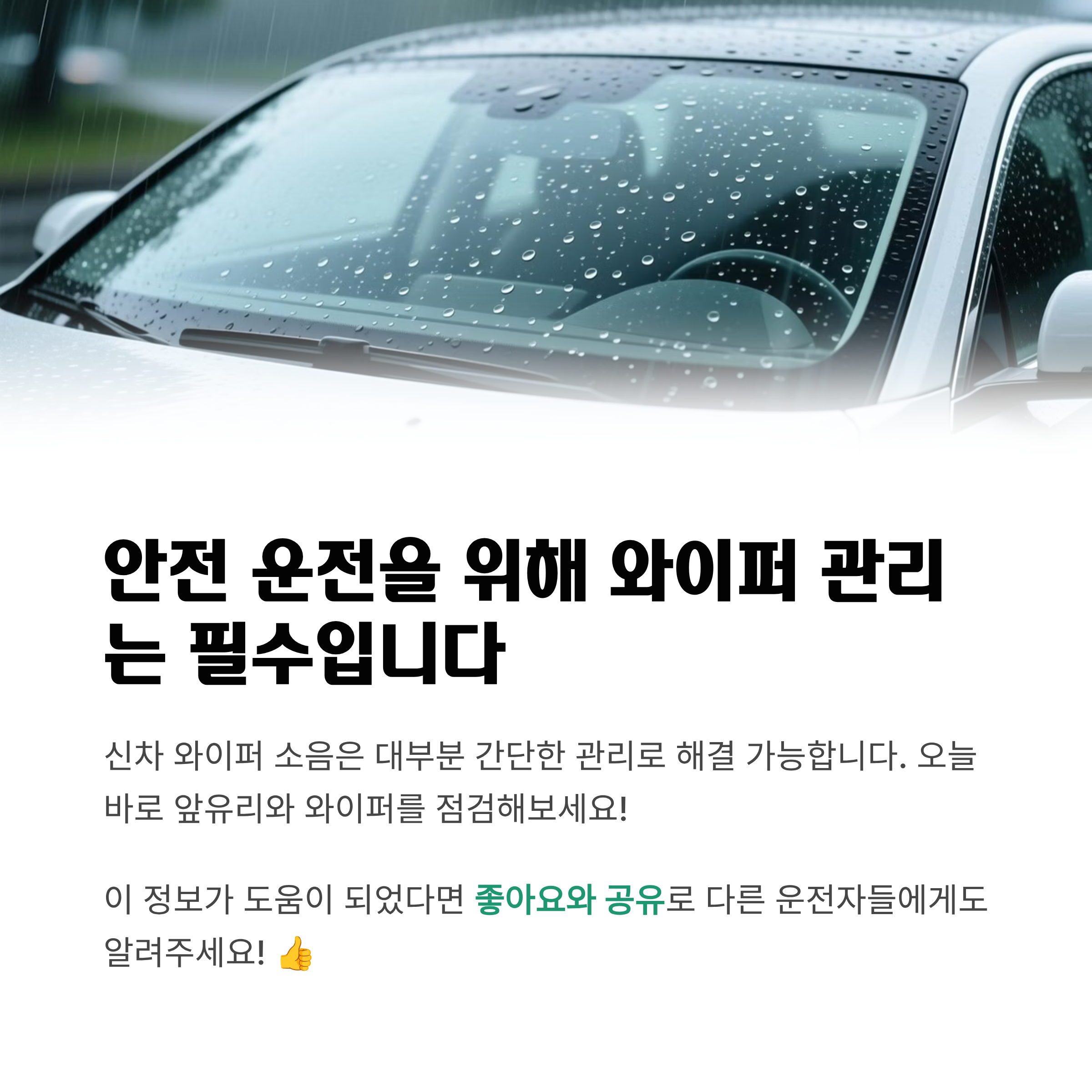 걱정하지 마시고 오늘 바로 앞유리와 와이퍼를 한 번 닦아보세요.