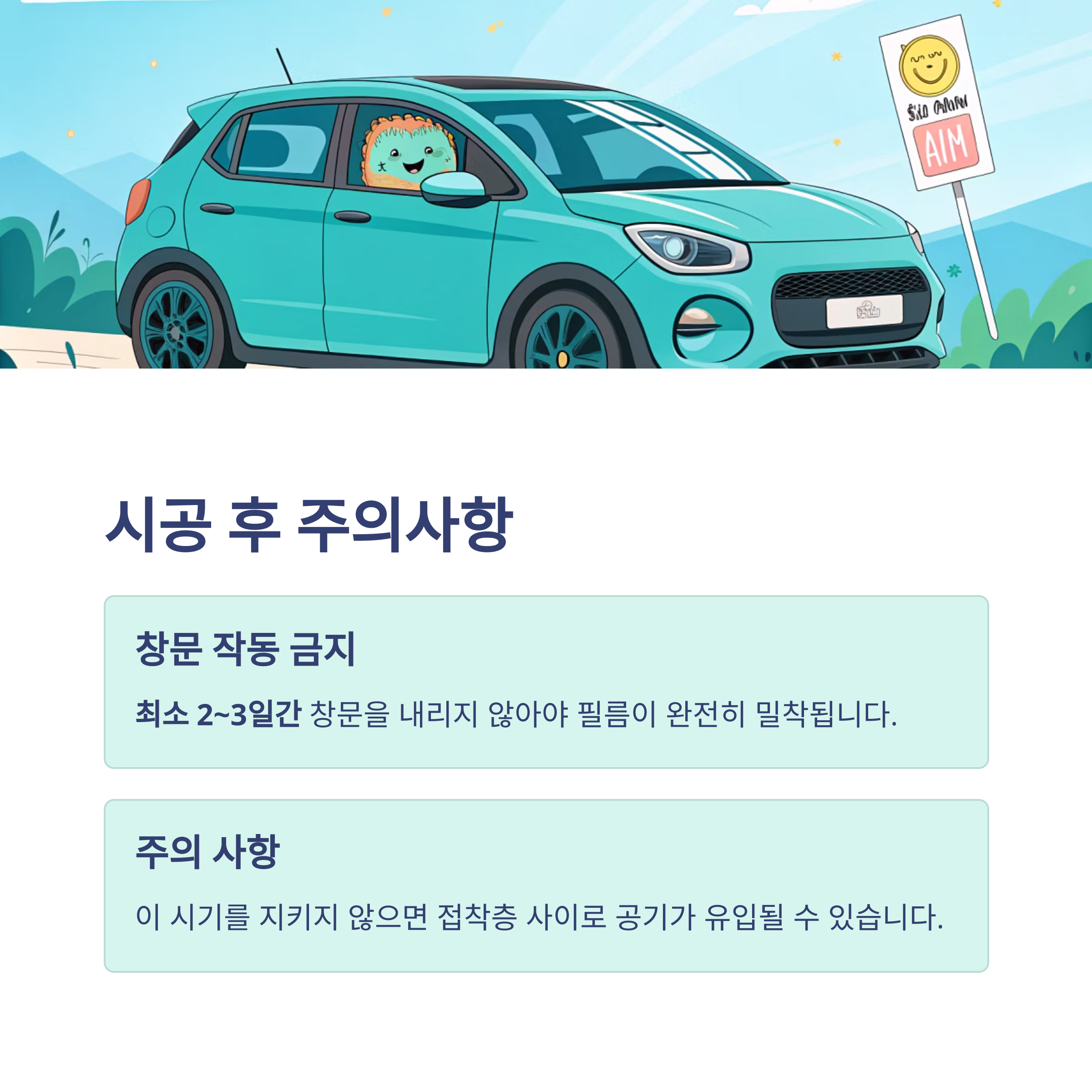 최소 2~3일은 창문을 내리지 않아야 필름이 유리에 완전히 밀착되며,
