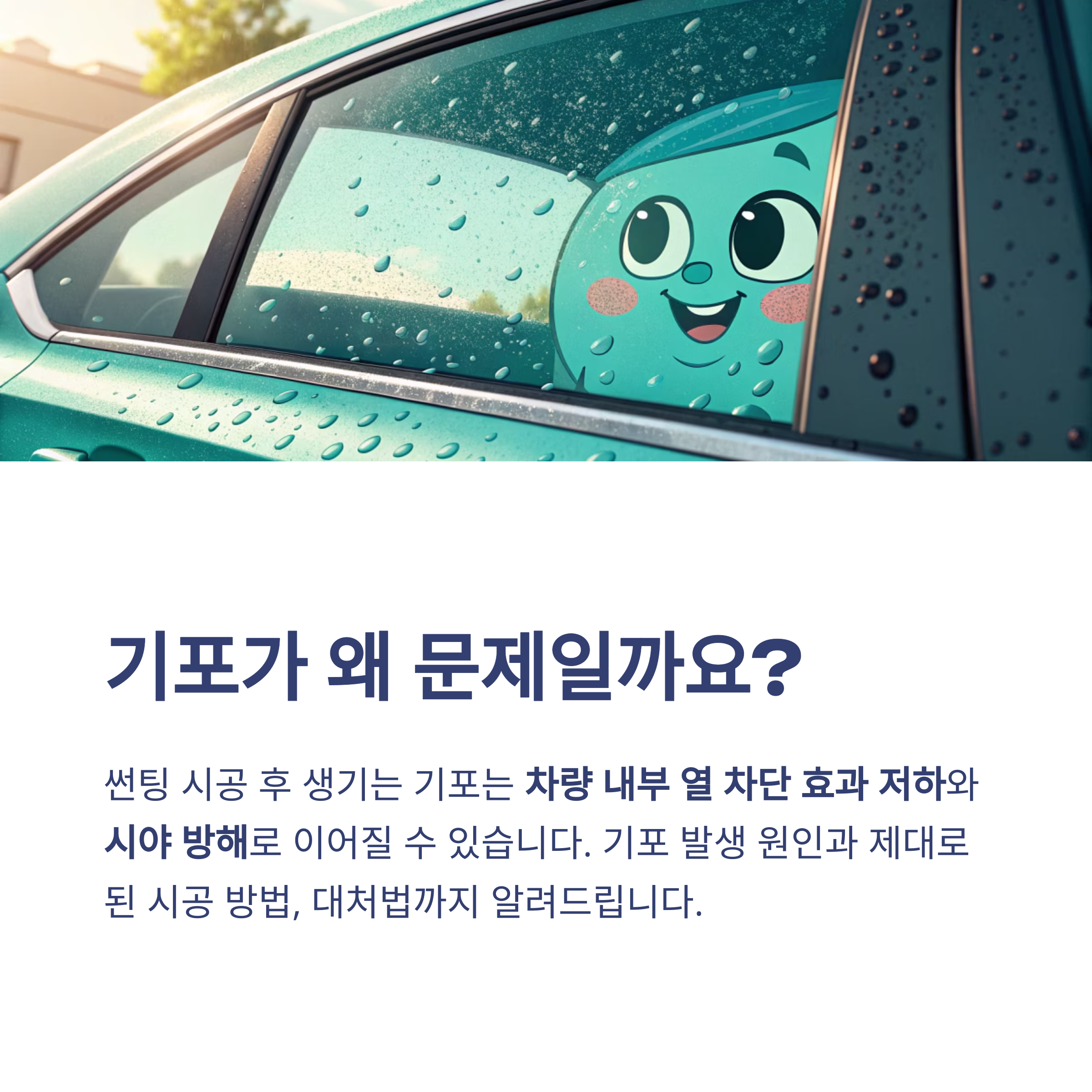 썬팅 시공 후 생기는 기포는 단순한 시각적 문제를 넘어 차량 내부 열 차단 효과 저하와 시야 방해로까지 이어질 수 있습니다.