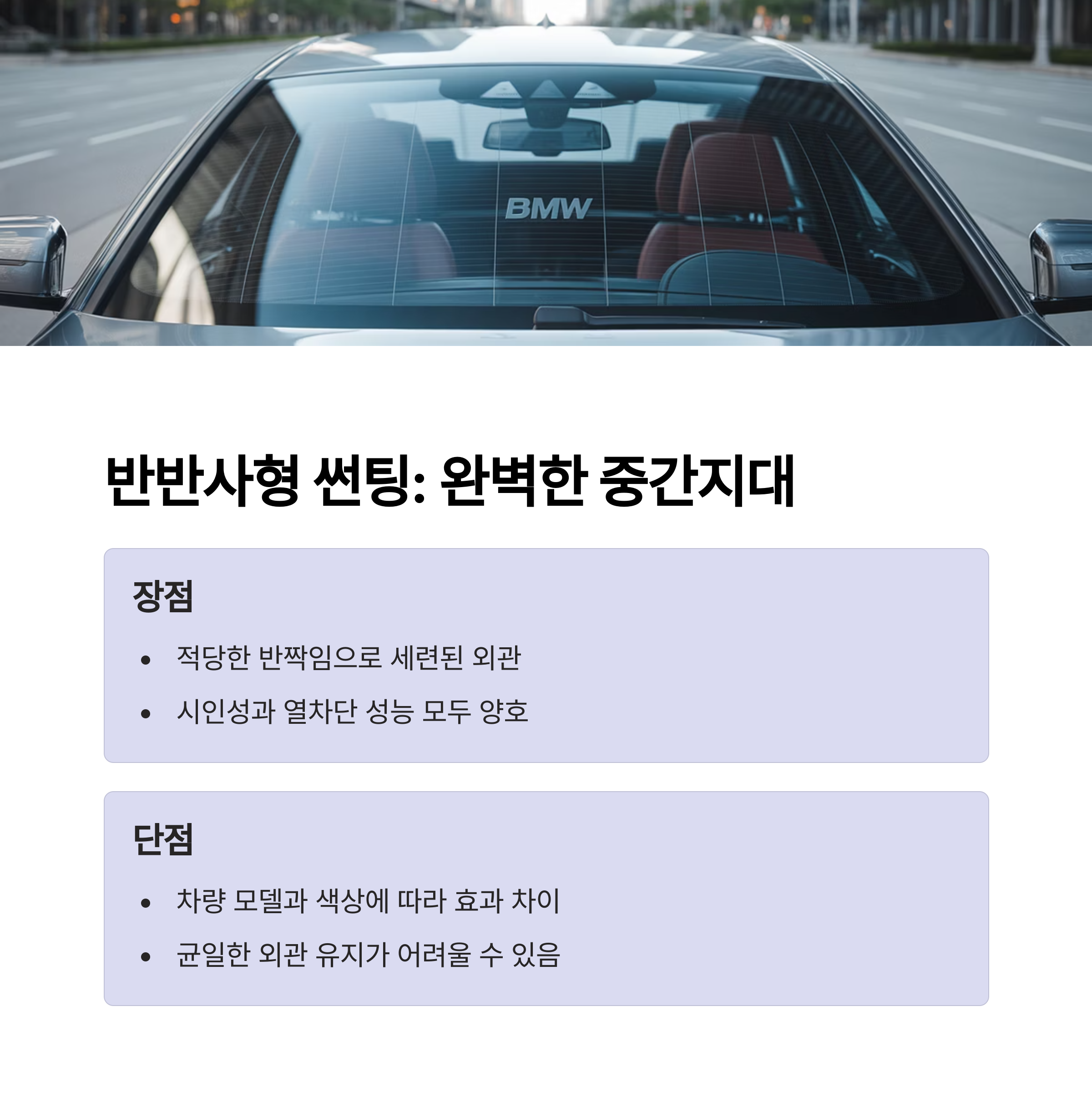 실제 차량에 썬팅을 적용해본 결과를 바탕으로 장단점을 정리해