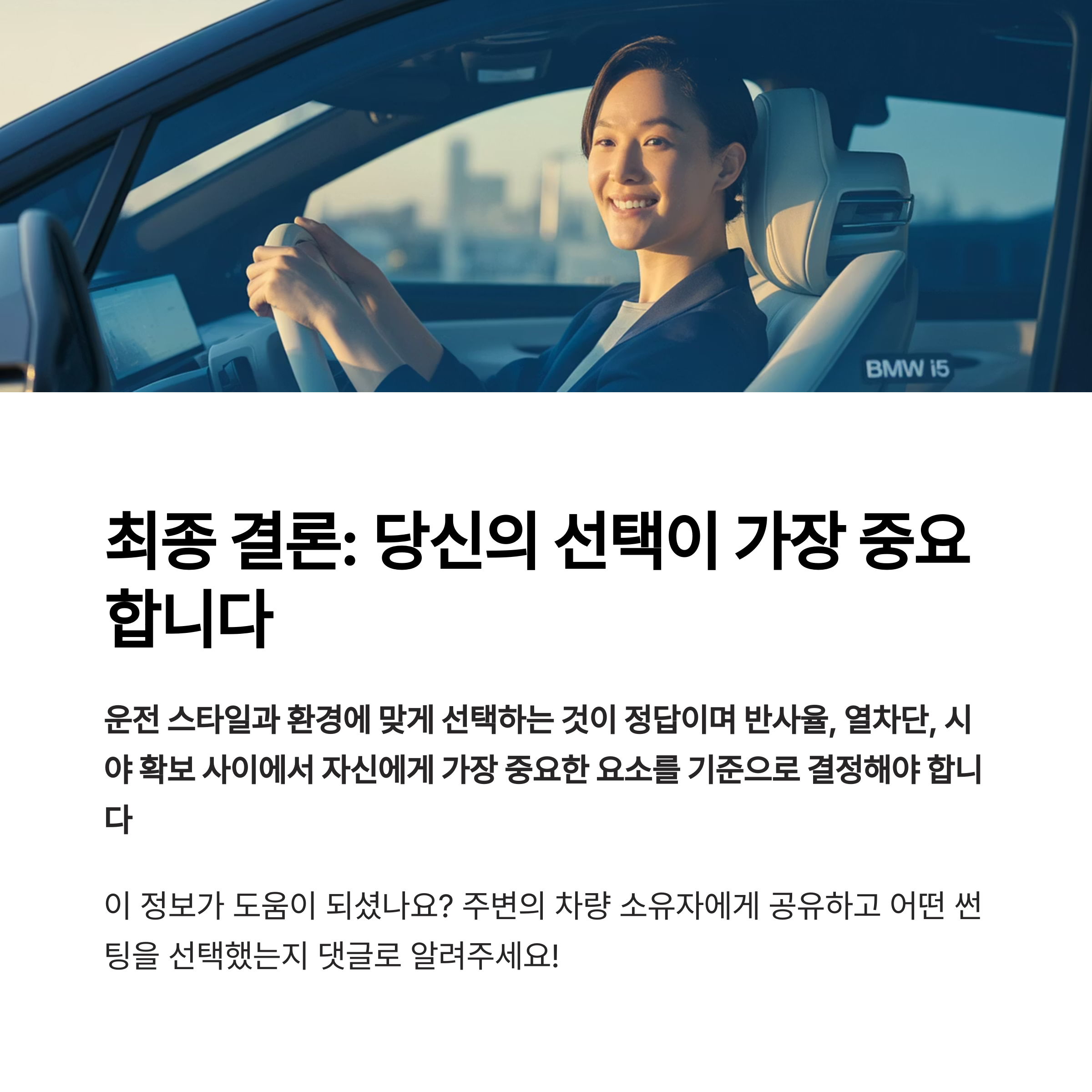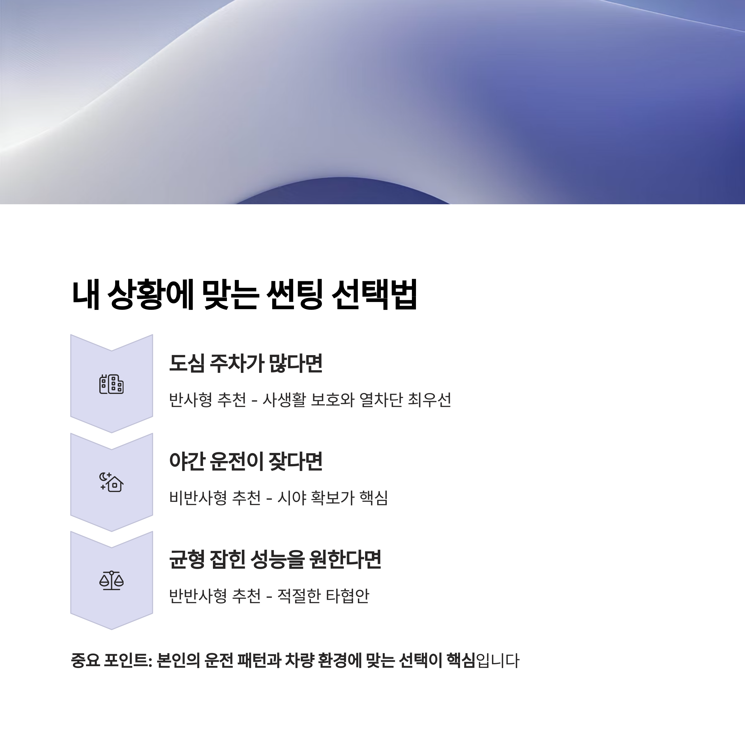 중요 포인트는 본인의 운전 패턴과 차량 환경에 맞는 선택이 핵심입니다