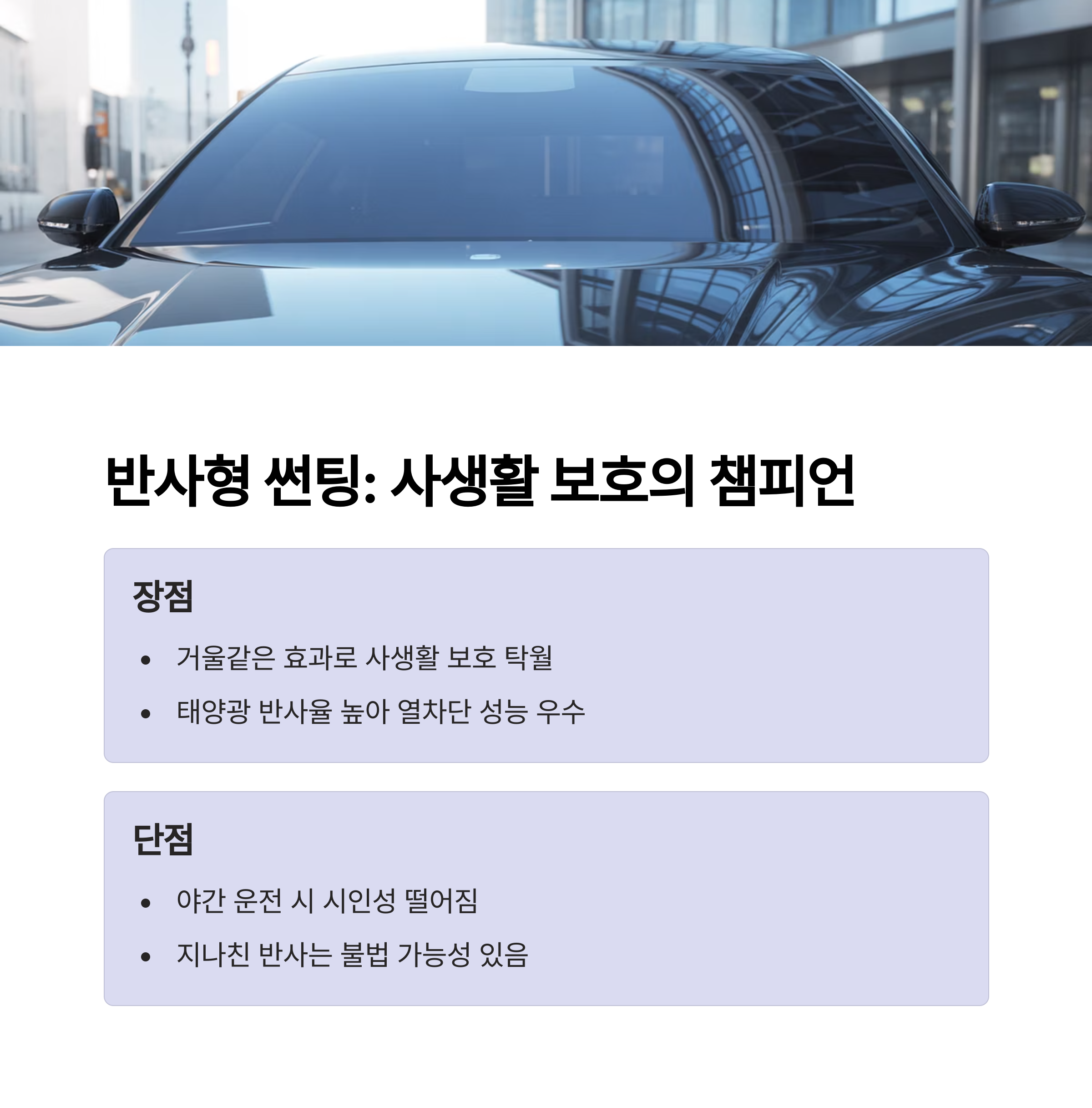 자동차 썬팅 필름은 '반사형', '비반사형', '반반사형'으로 나뉘며