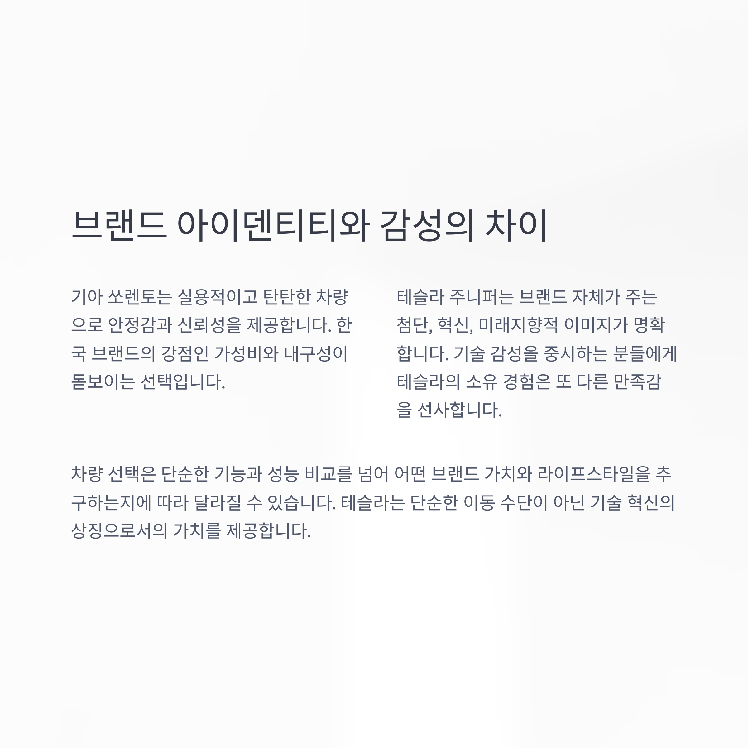 비교 항목 쏘렌토 하이브리드 테슬라 주니퍼
